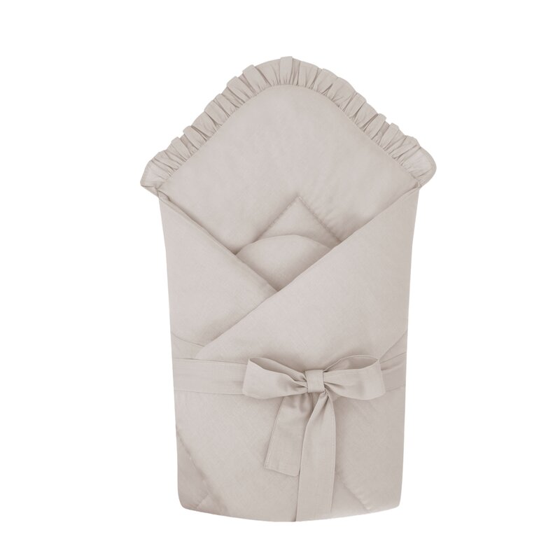 ❤️Paturica de infasat multifunctionala pentru nou-nascuti, cu volanase si panglica – MimiNu, Royal Beige❤️