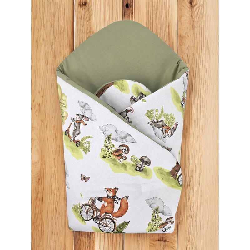 ❤️Paturica de infasat multifunctionala nou-nascuti – 100% bumbac, 75x75 cm, Fox on bikes Natural – Qmini