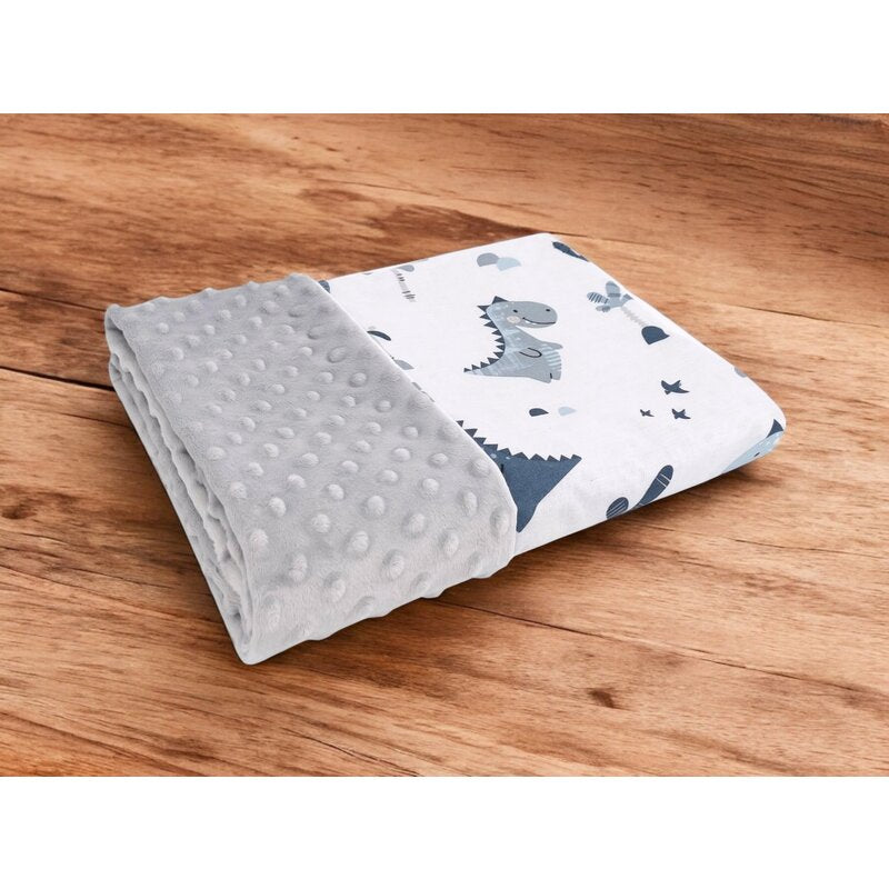 ❤️Paturica pufoasa MimiNu, 2 fete, 75x100 cm, Minky + Bumbac, Dino Granat❤️