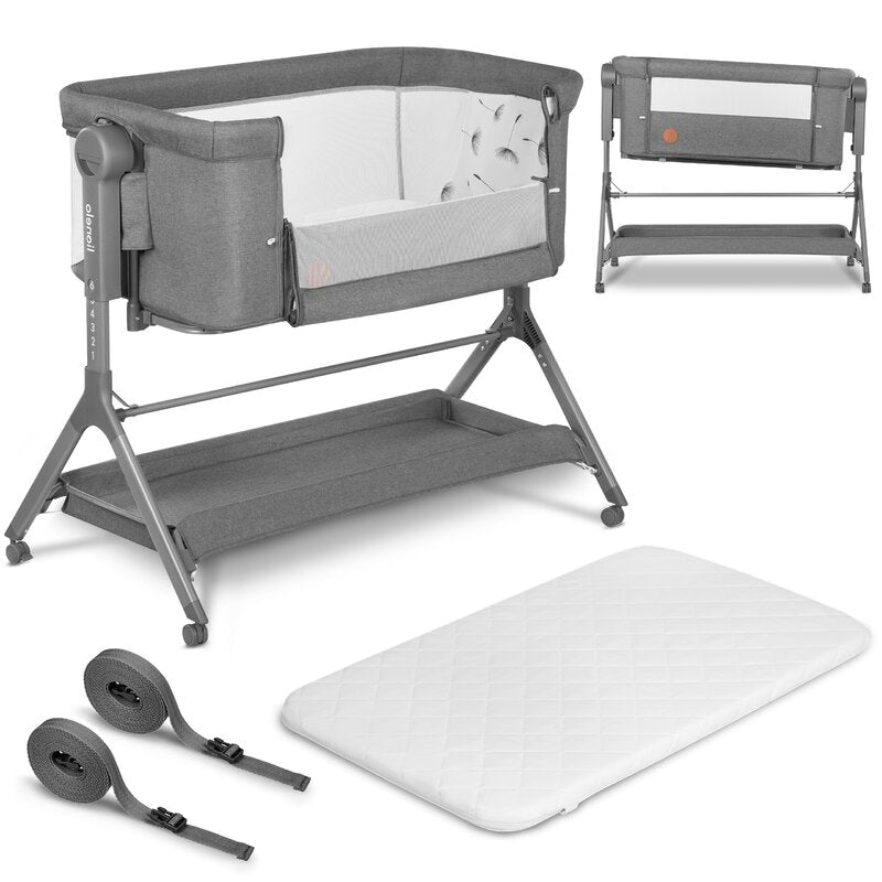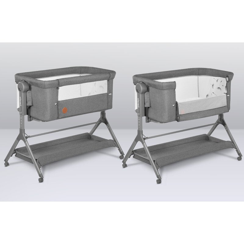 Patut co-sleeper, Lionelo, Leonie, Plus, Pliabil, Cu sistem de leganare, Cu setare unghiulara, Reglabil in 6 pozitii pe inaltime, Conform cu standardele europeane de securitate EN1130 si EN16890, Gri