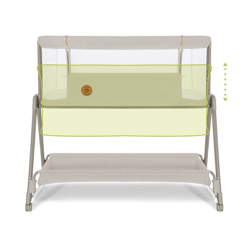 Patut co-sleeper, Lionelo, Luna, 2 in 1, Cu laterala culisanta, Cu setare unghiulara, Cu roti, Reglabil in 6 pozitii pe inaltime, Bej