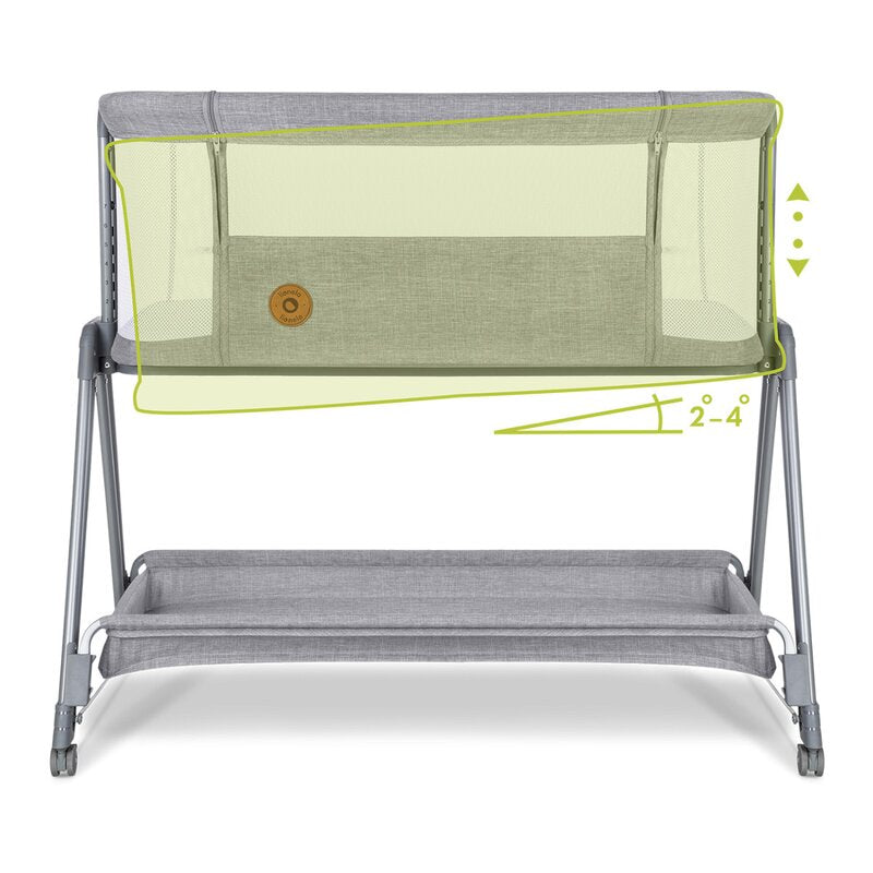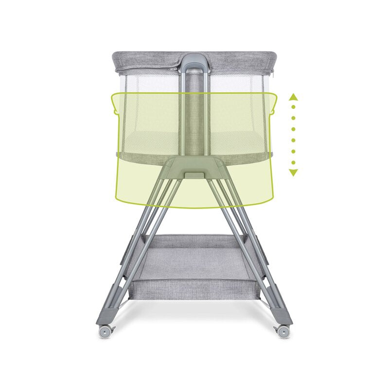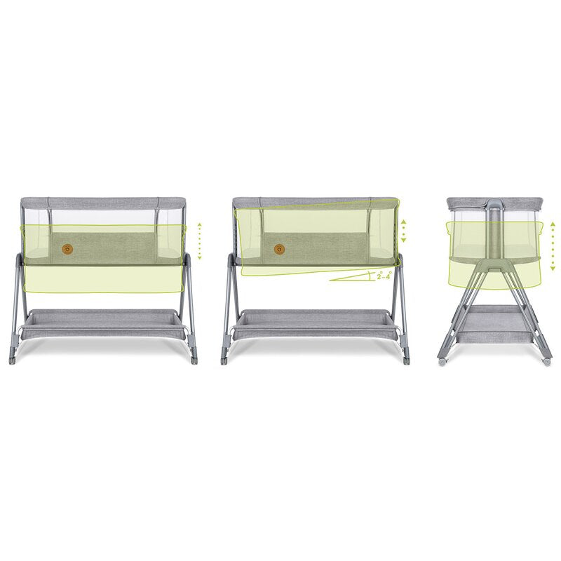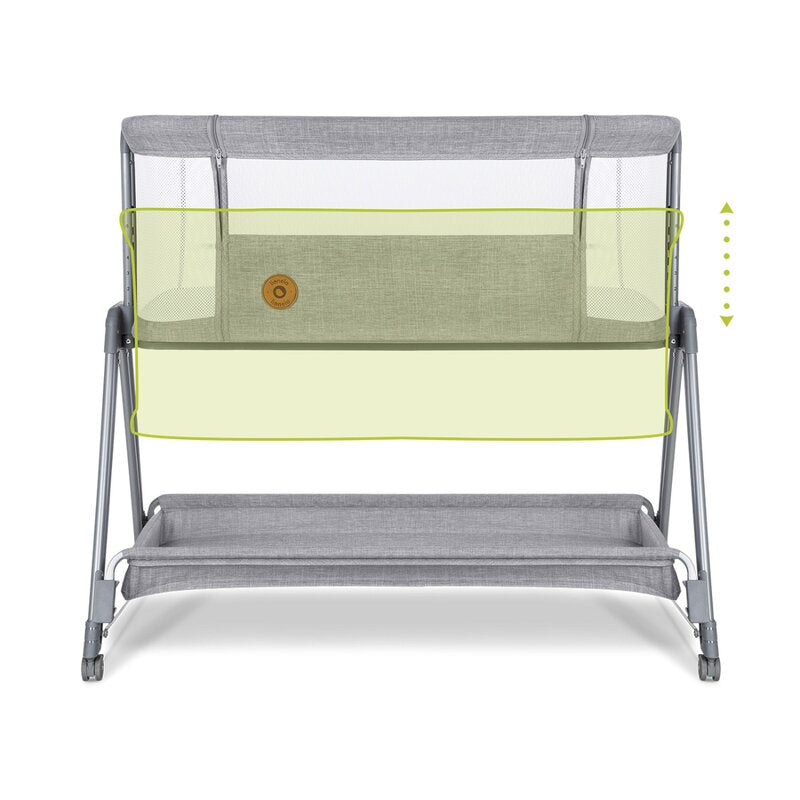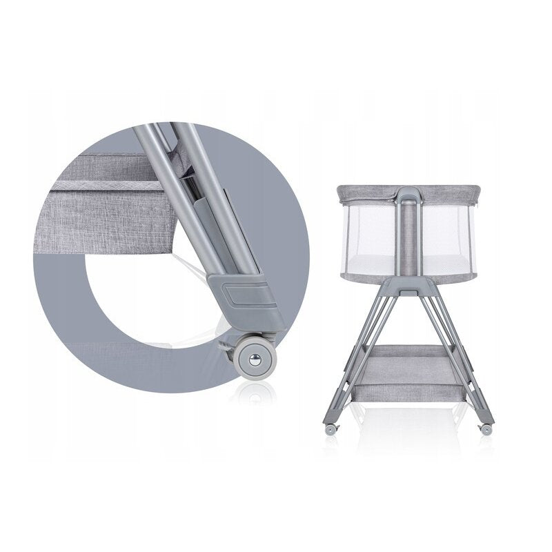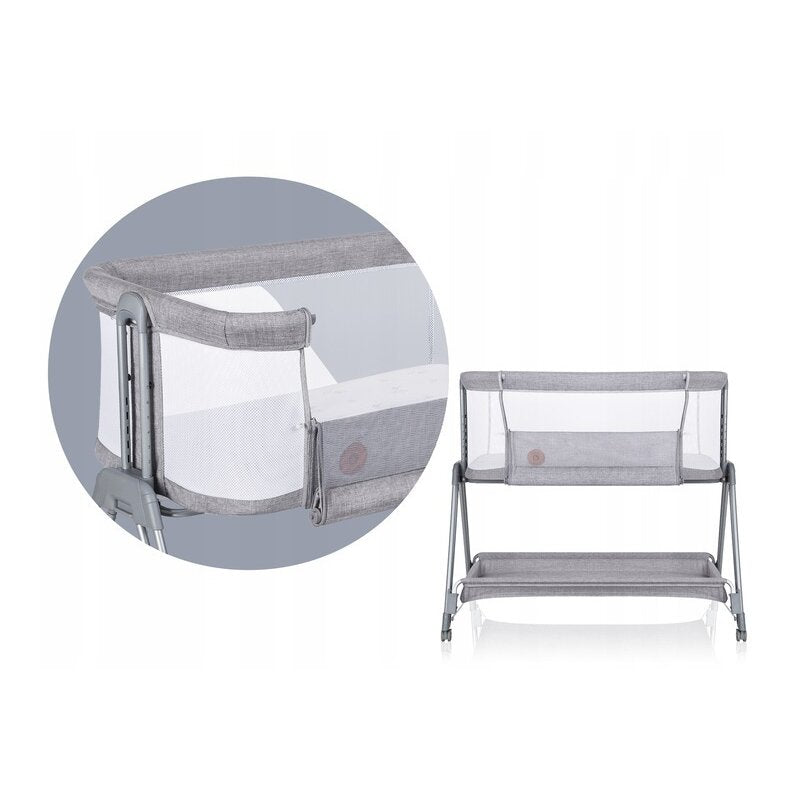 Patut co-sleeper, Lionelo, Luna, 2 in 1, Cu laterala culisanta, Cu setare unghiulara, Cu roti, Reglabil in 6 pozitii pe inaltime, Gri deschis