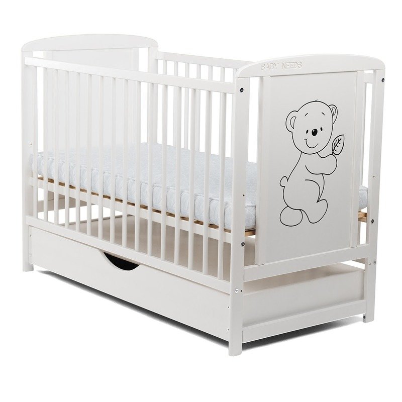 ✨Patutul Timmi Ursulet cu sertar integreaza perfect functionalitatea cu estetica: ofera un spatiu sigur si confortabil pentru somnul bebelusului si vine echipat cu un sertar incapator, ideal pentru depozitarea lenjeriilor, scutecelor si hainutelor, economisind astfel spatiu in camera copilului.