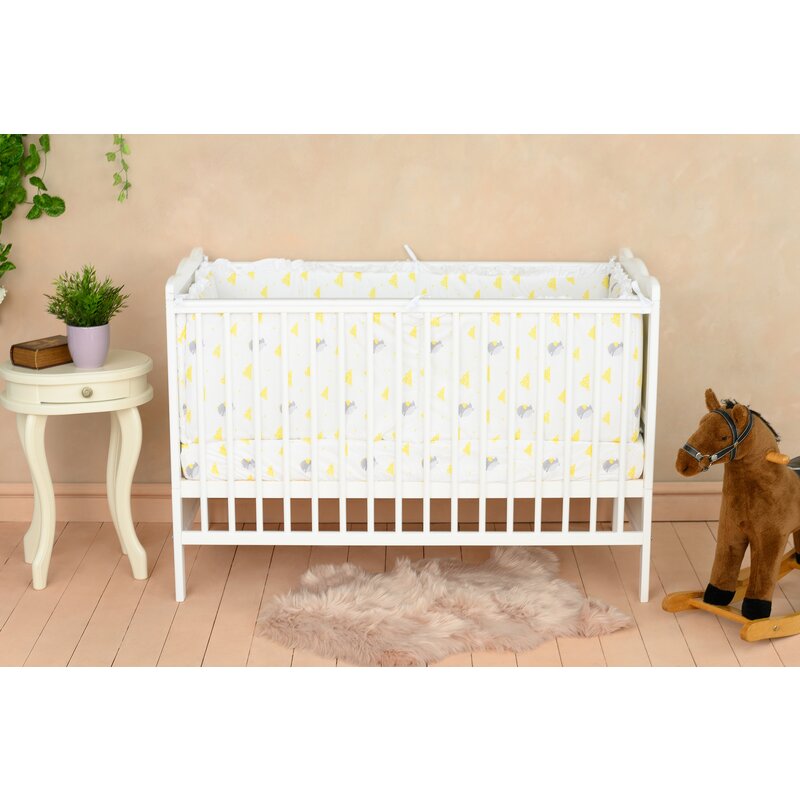 Patut din lemn bebe, 120x60 cm, Cu sina speciala pentru dentitie, Multifunctional, EN716-1, EN716-2, Alb, Qmini, Julia + Saltea 8 cm