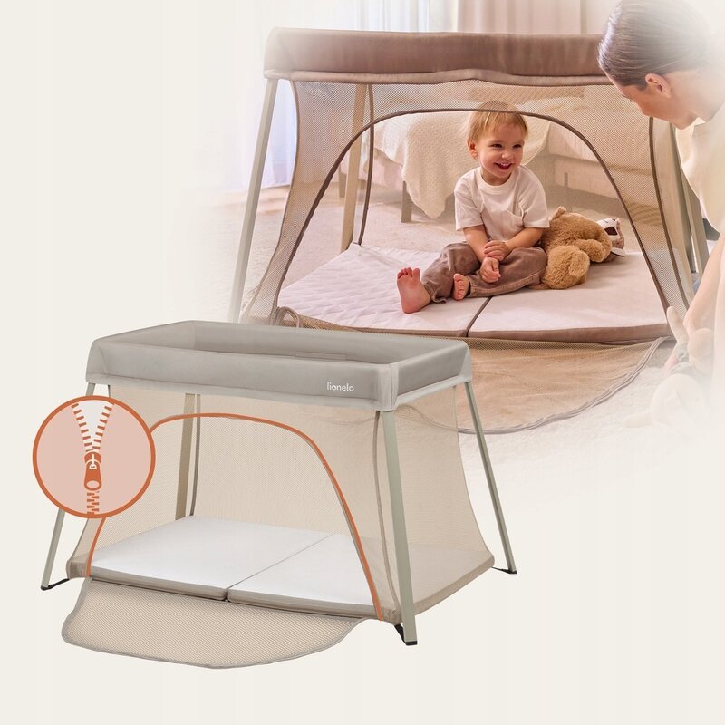 Patut multifunctional, Lionelo, Alice, 3 in 1, 2 trepte de inaltime pentru saltea, Pliabil, Material rezistent Oxford 300D, Cu iesire laterala, Geanta de transport, Pana 15 kg, 0 luni+, 104×70×74 cm, Bej