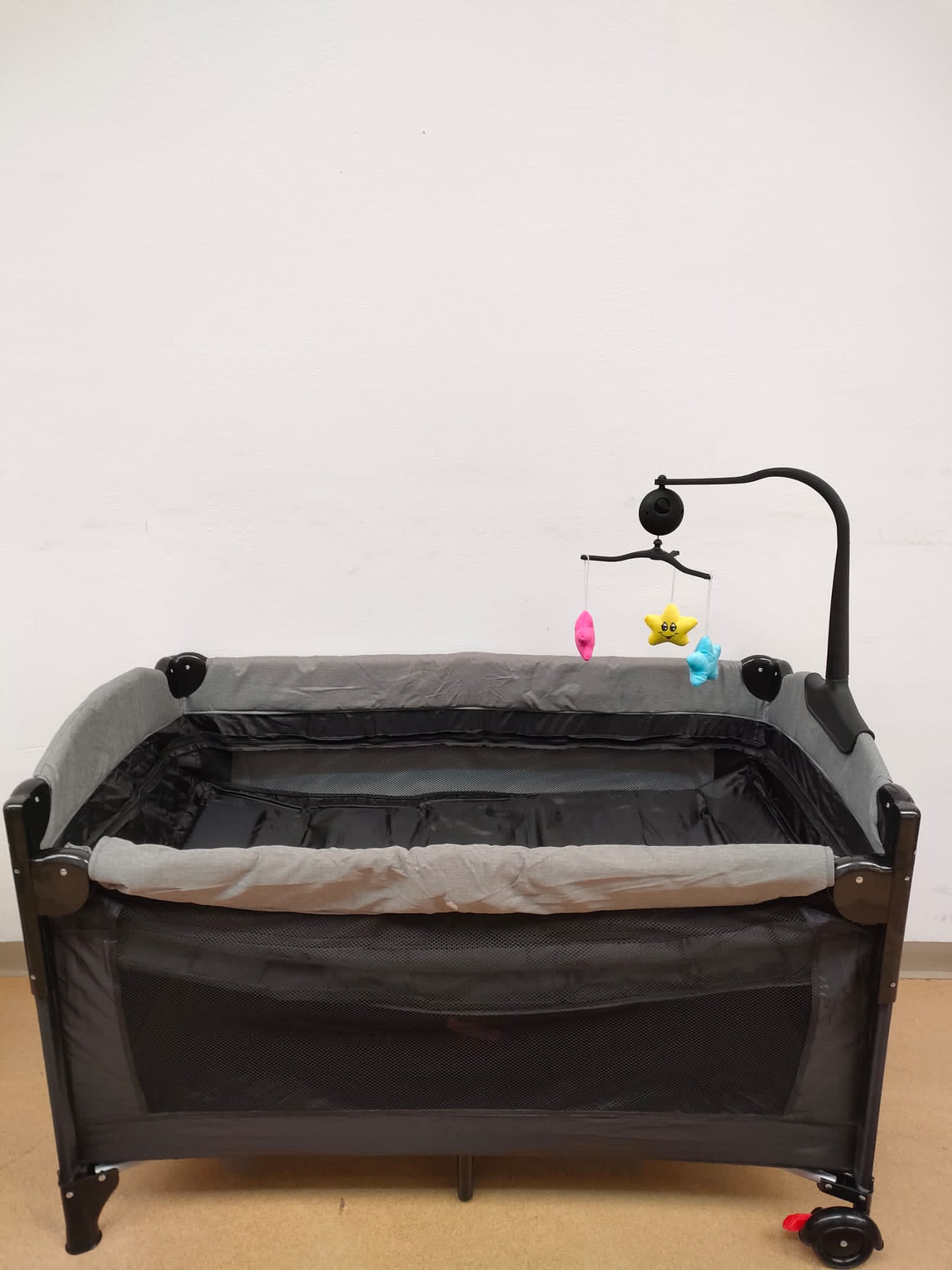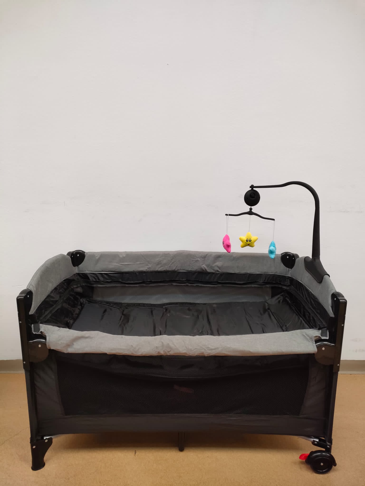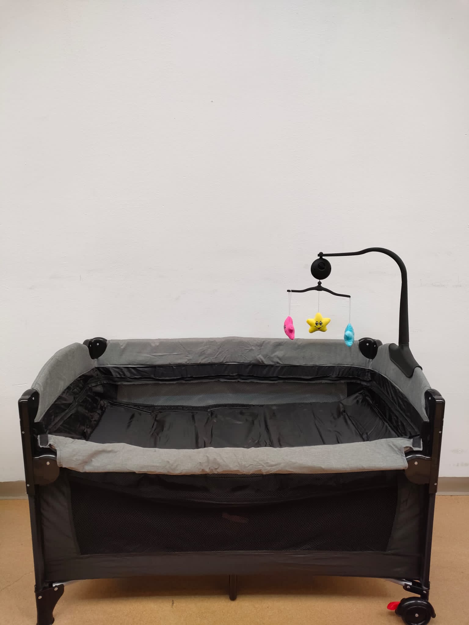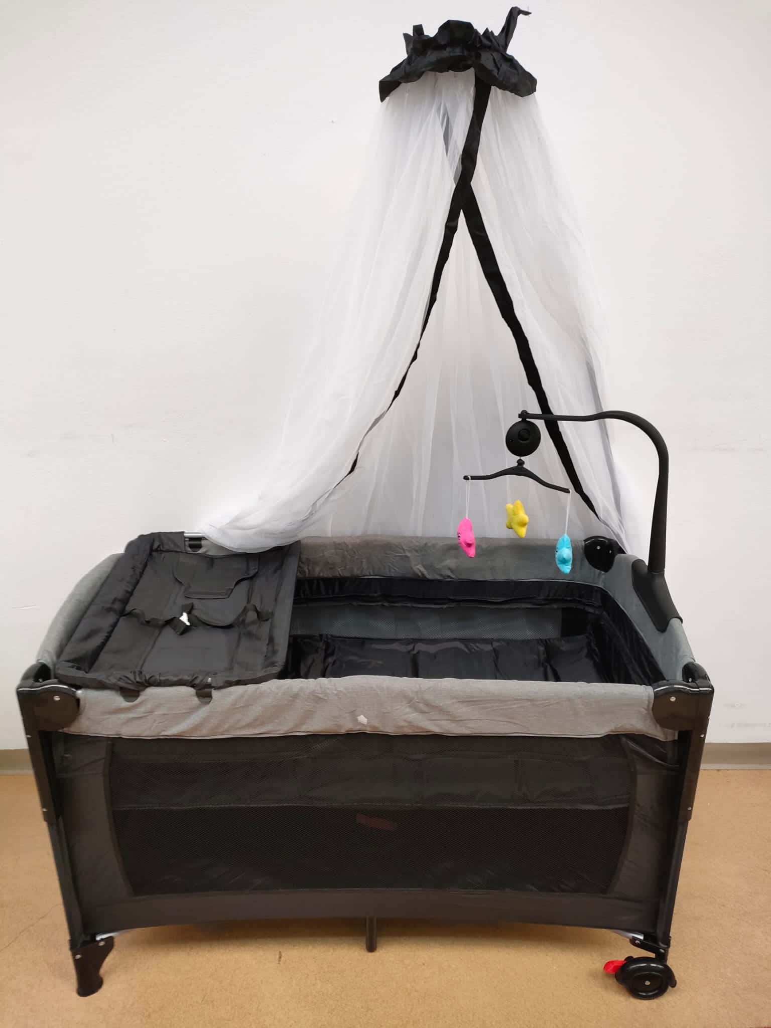 Patut pentru bebelusi cu baldachin , laterala pliabila cu masa de infasat si carusel ,GRI BBDT1GRI