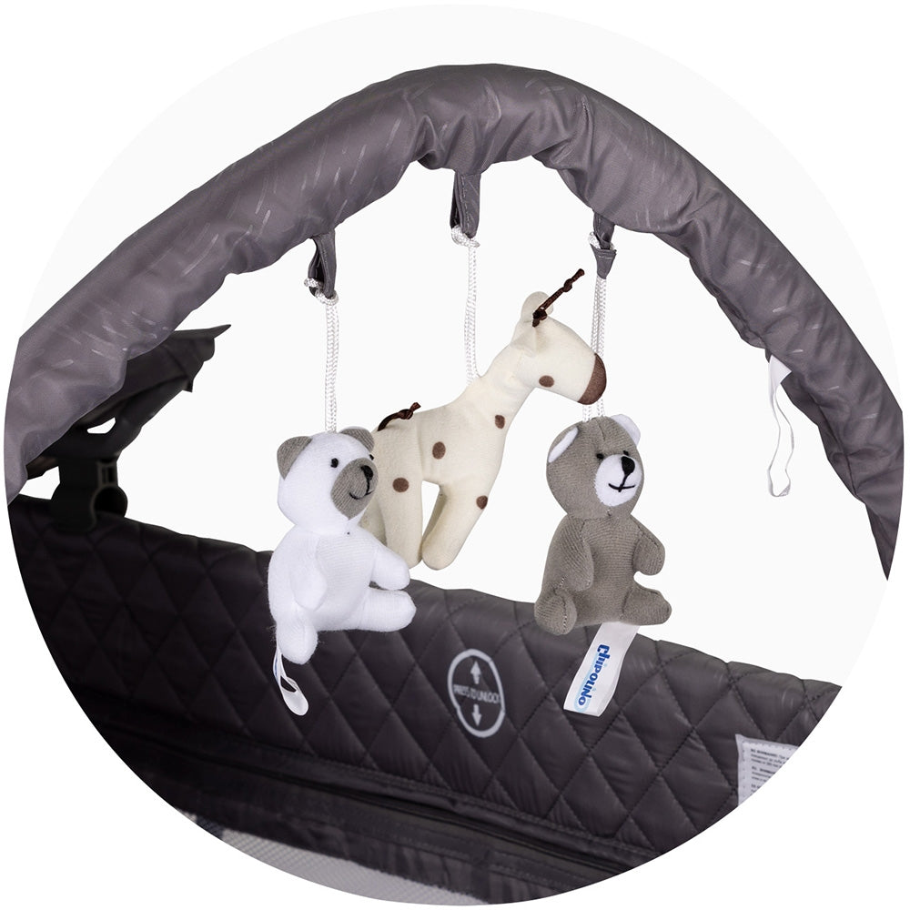 - Bara de jucarii cu trei jucarii de plus pentru a distra copilul