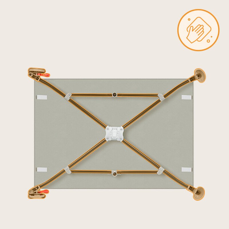 Nivelul superior este ideal pentru nou-nascuti, oferind parintilor acces usor si protejand spatele. Cand copilul poate sta singur in fund, salteaua se coboara. Salteaua din spuma T25 are o duritate potrivita si sustine corect coloana vertebrala.