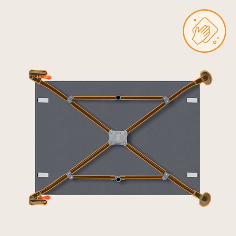 Stabilitatea este oferita de o structura usoara, dar solida, din otel. Husa este din material rezistent Oxford 300D, impermeabil.