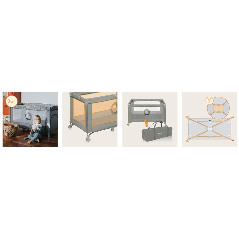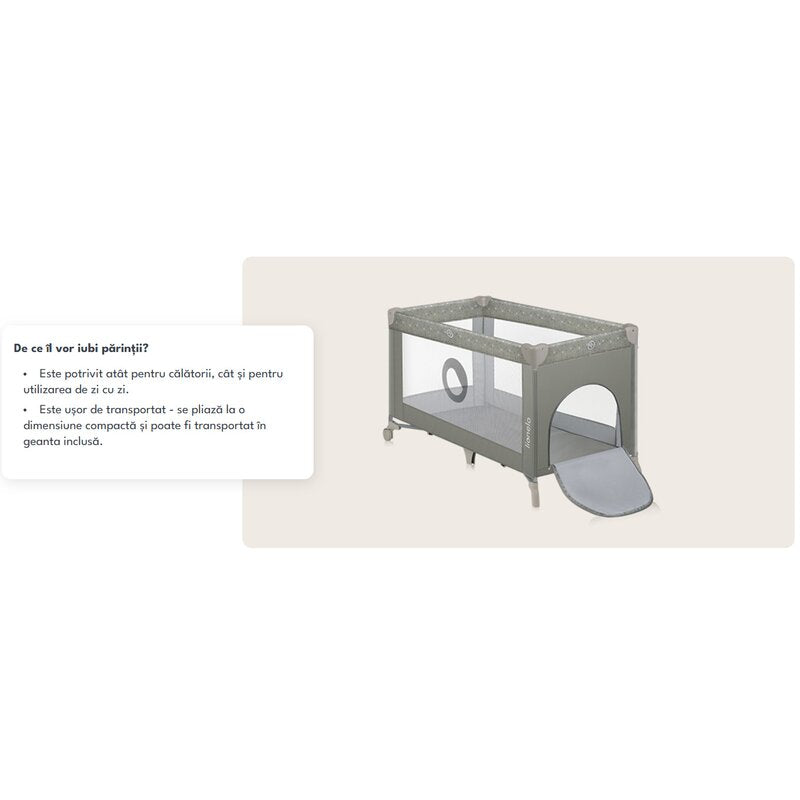 Solutia ideala pentru nopti petrecute departe de casa. Patutul se pliaza rapid intr-o forma compacta si este gata de drum!