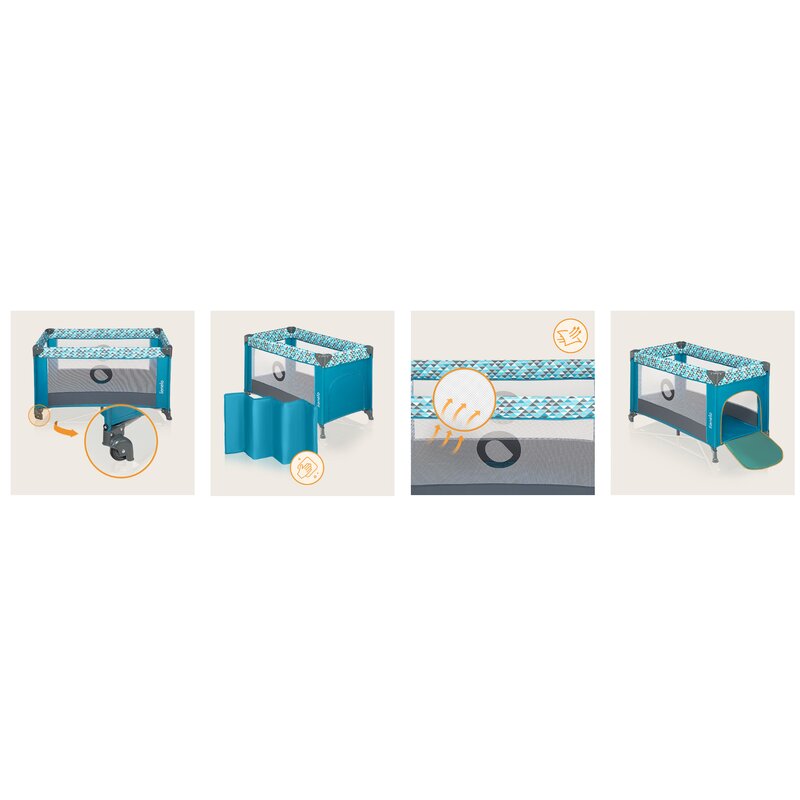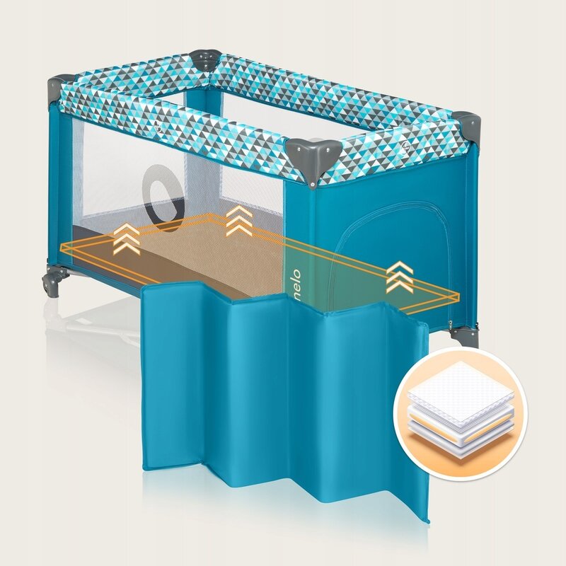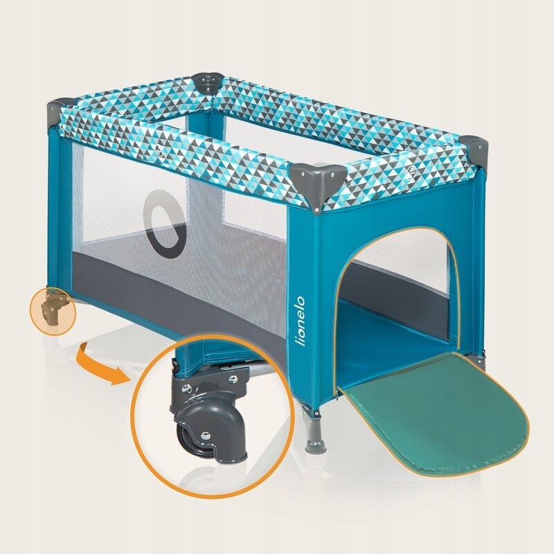 Patut pliant, Lionelo, Stefi, Cu un nivel, Cu intrare laterala cu fermoar, 2 roti, 120x60 cm, Conform cu standardul european de securitate EN 716, Turquoise