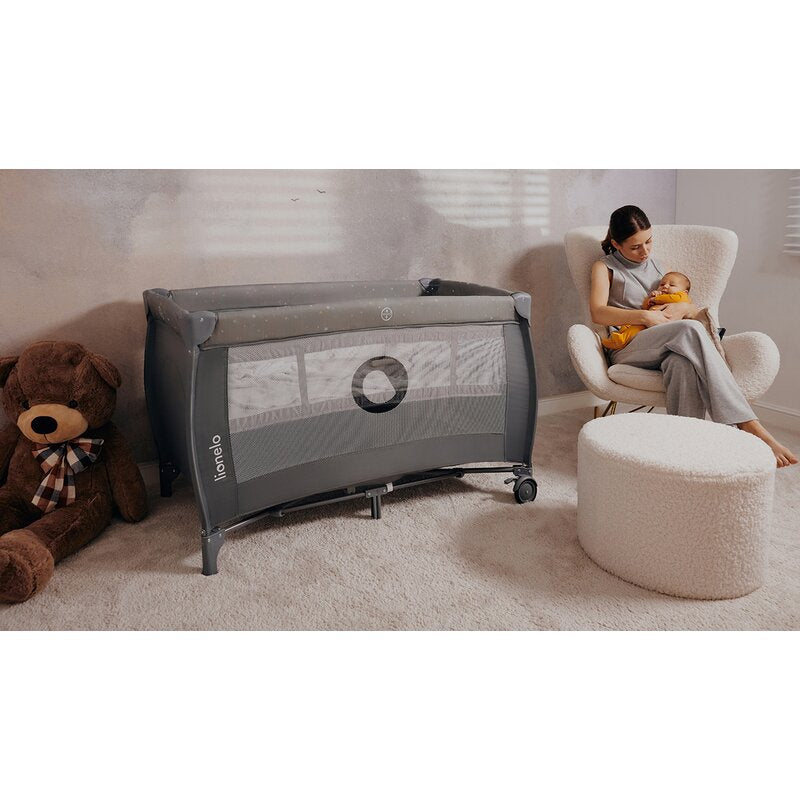Patut pliant, Lionelo, Stefi Plus, Cu doua nivele, Cu intrare laterala cu fermoar, 2 roti, 120 x 60 cm, Conform cu standardul european de securitate EN 716, Bej