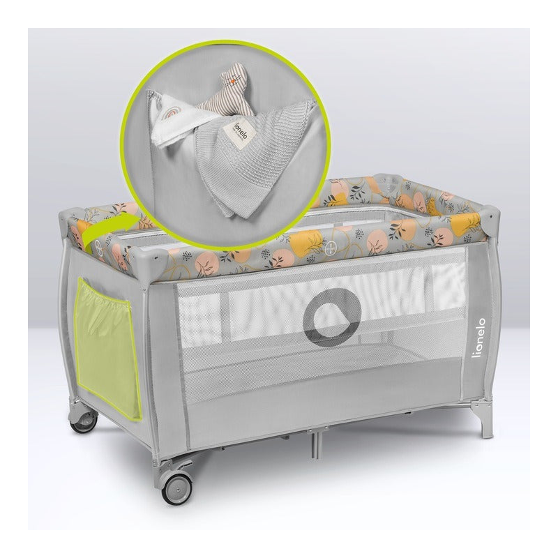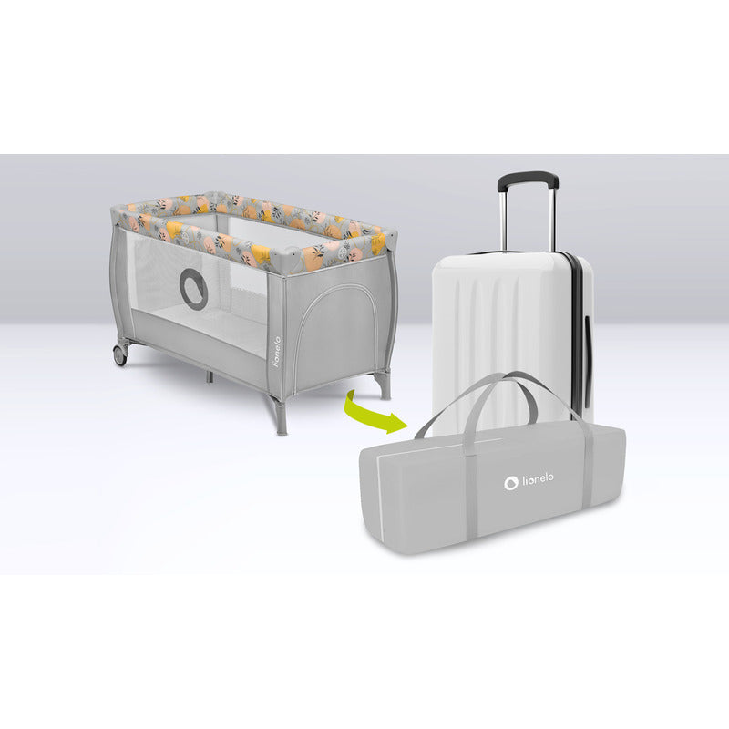 Patut pliant, Lionelo, Stefi Plus, Cu doua nivele, Cu intrare laterala cu fermoar, 2 roti, 120 x 60 cm, Conform cu standardul european de securitate EN 716, Roz/Galben