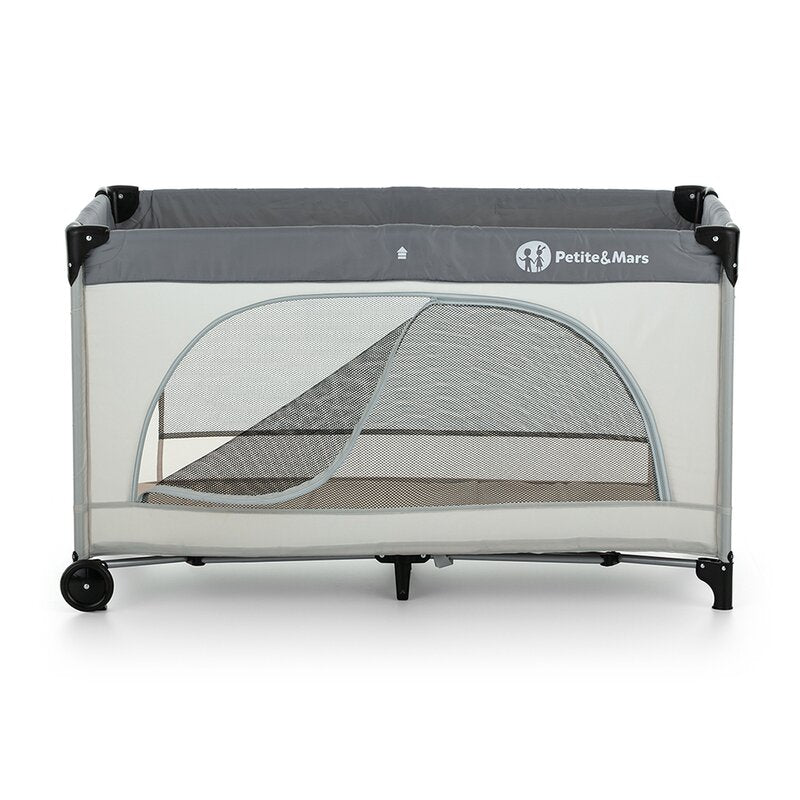 ❤️ Patut pliabil cu laterala cu fermoar – Petite&Mars | Ideal pentru calatorii si joaca ❤️