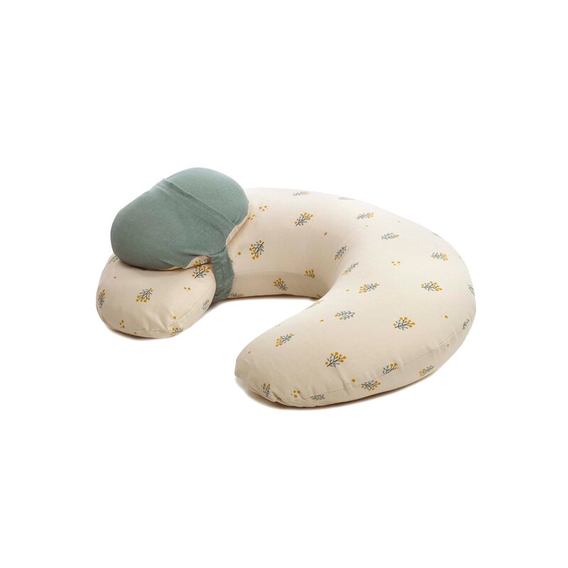 Perna pentru alaptare, Jane, Ergonomica, Cu husa detasabila si lavabila si pernuta suplimentara, Umpluta cu bilute din poliester, Botanic