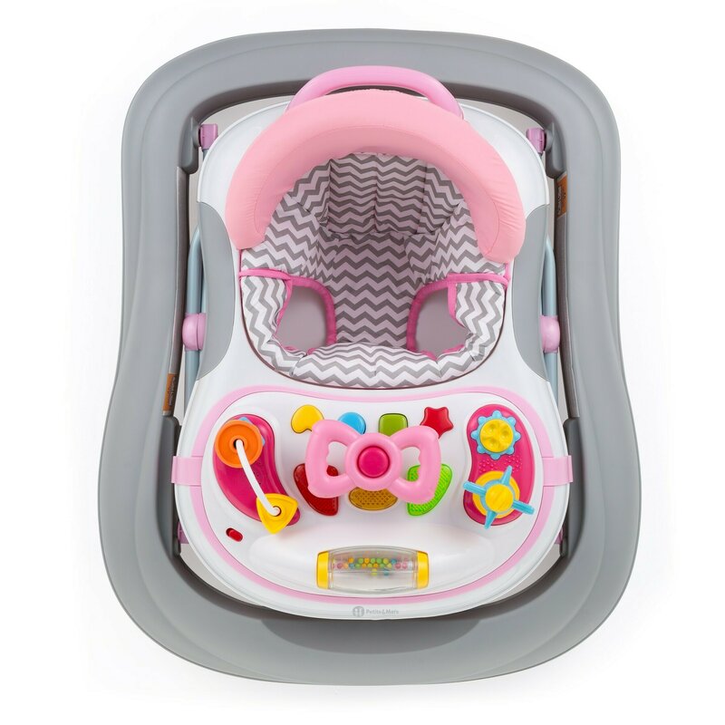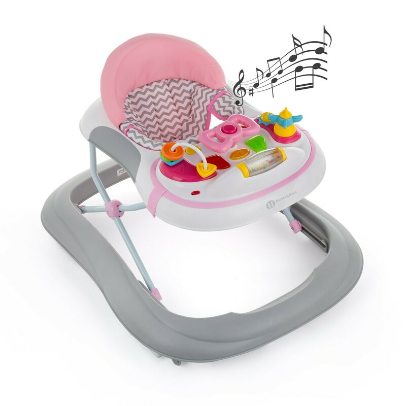 Premergator, Petite&Mars, Monty, Panou interactiv, Reglabil pe inaltime, Roti, Sustine 12 kg, Chevron Pink