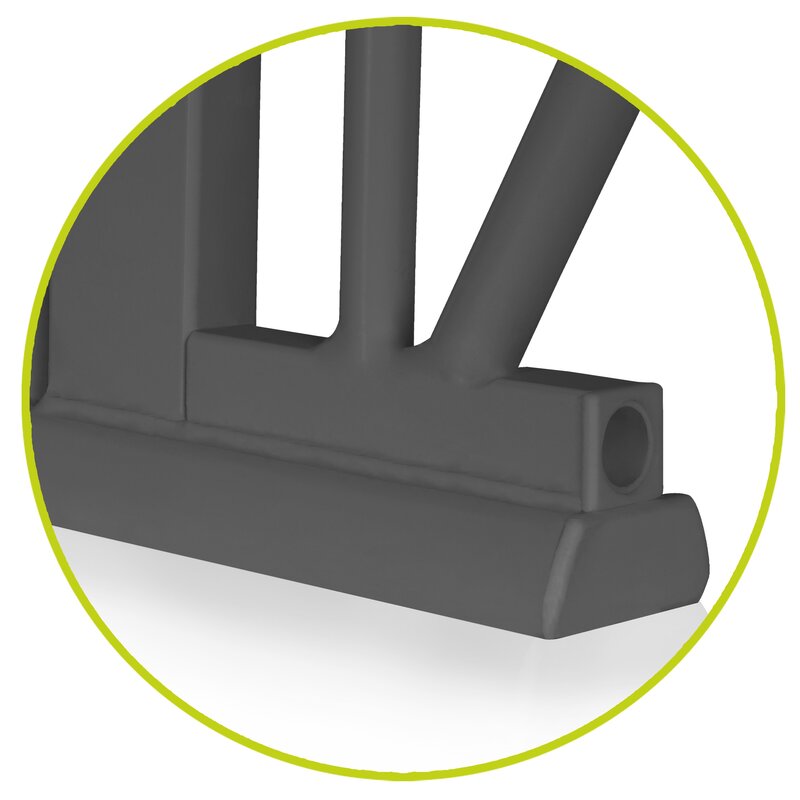 Poarta are un prag rotunjit cu o inaltime de 1,5 centimetri, eliminand astfel posibilitatea de declansare si facilitand curatarea prin aspiratoare automate.