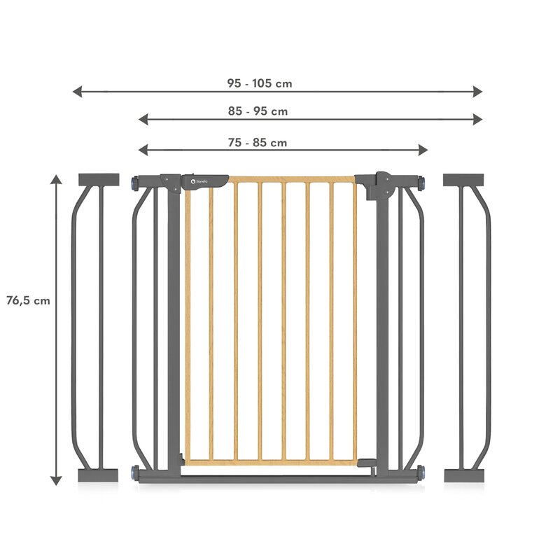 Poarta de siguranta, Lionelo, Truus Slim, Prin presiune, 105 cm, Conform cu standardul europeane de securitate EN1930, Gri/Natur