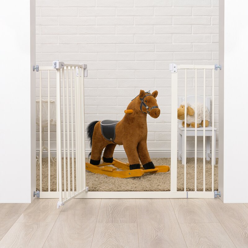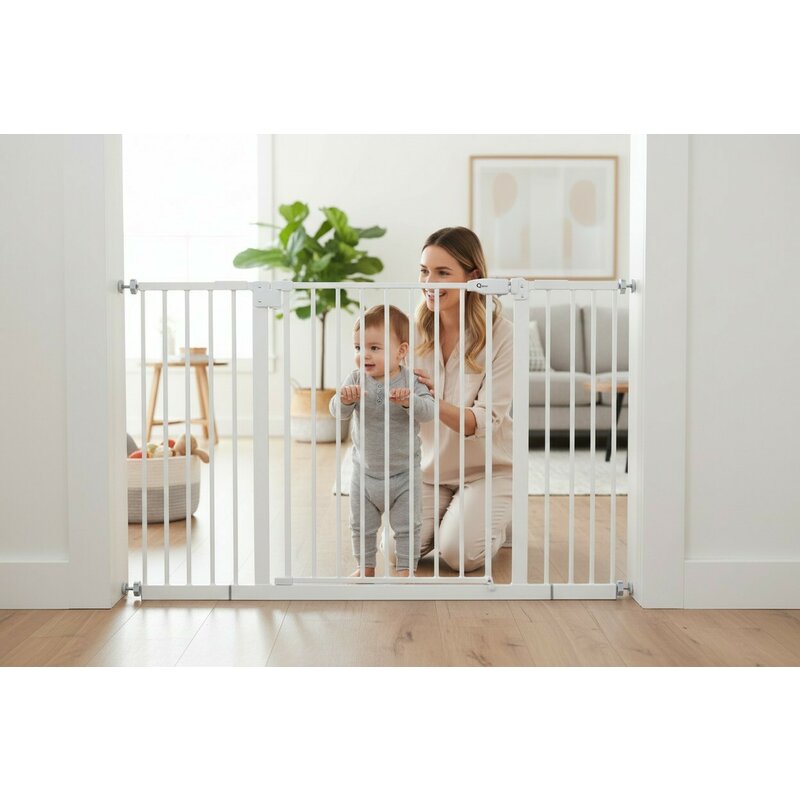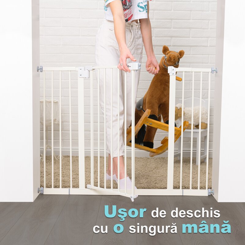 Poarta siguranta, Qmini, Thor, 74 - 109.4 cm, Inchidere automata, Sistem dublu de blocare, Otel, Garantie 5 ani, ASTM1004 si EN1930-2011, Alb