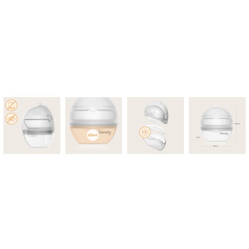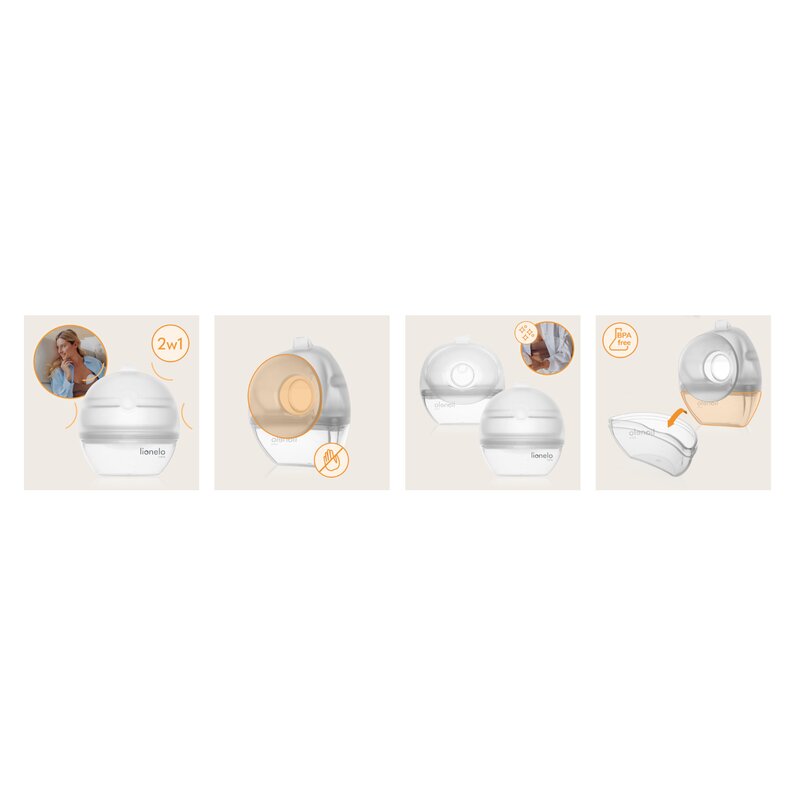 Pompa de san si colector de lapte, Lionelo, Milky 2 in 1, Volum 60 ml, Forma anatomica, Compataibila cu utilizarea cu sutien, Fara bisfenol A, Portabila, Alb