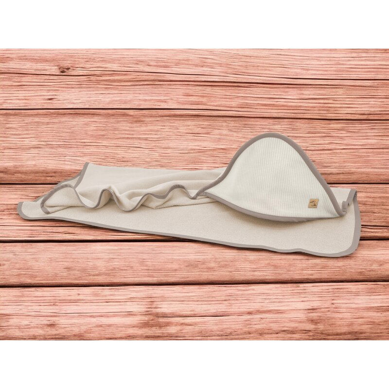 ❤️ Prosop cu gluga Qmini – Bamboo Beige & Interlock Beige (80x80 cm) ❤️