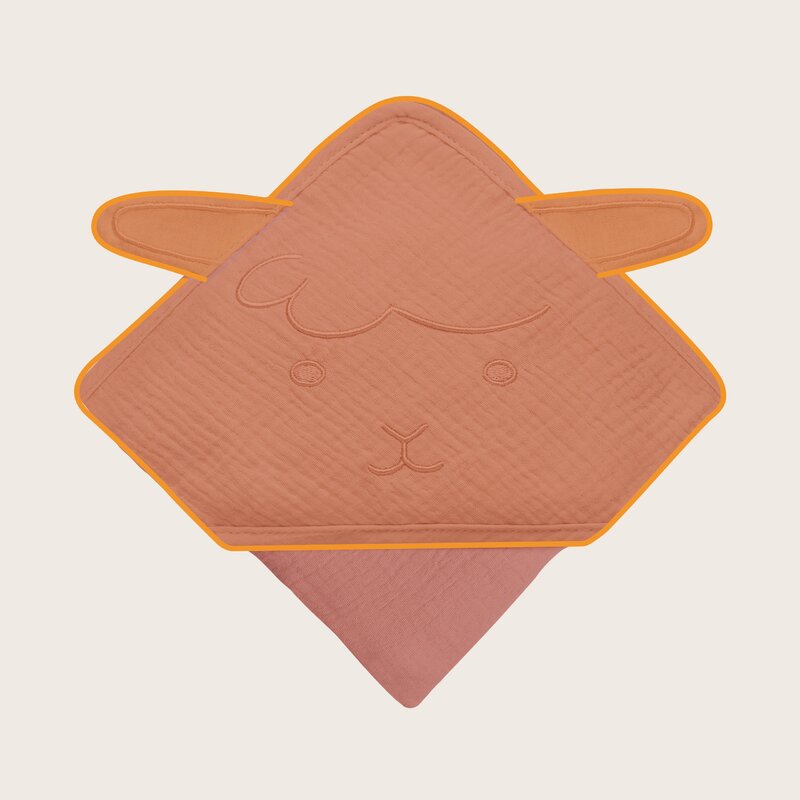 Prosop de baie, Lionelo, Cu gluga, Din muselina, 100% bumbac, 80x80 cm, Absorbtie eficienta, Rosu