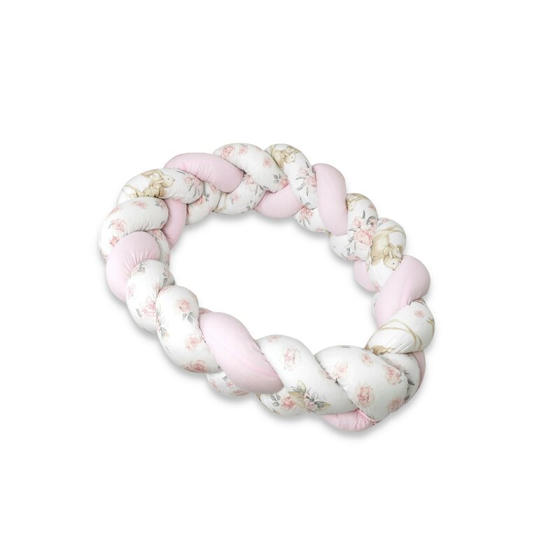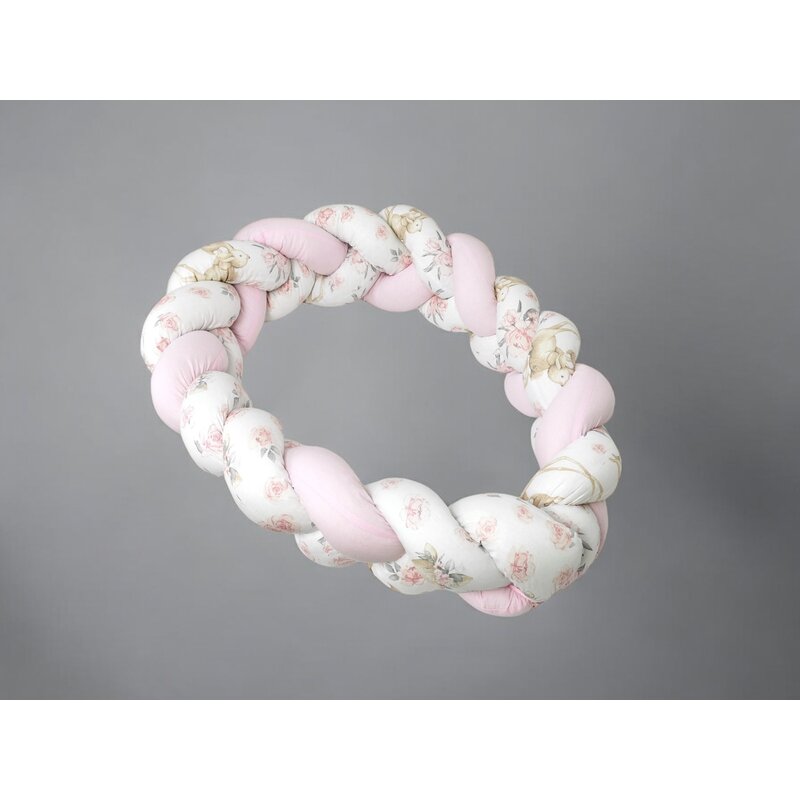 Protectie laterala, MimiNu, Pentru patut bebe, Tip Bumper impletit, Din bumbac, Din materiale certificate Oeko Tex Standard 100, Lungime 220 cm, Sweet Deer Pink