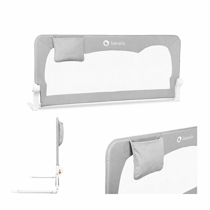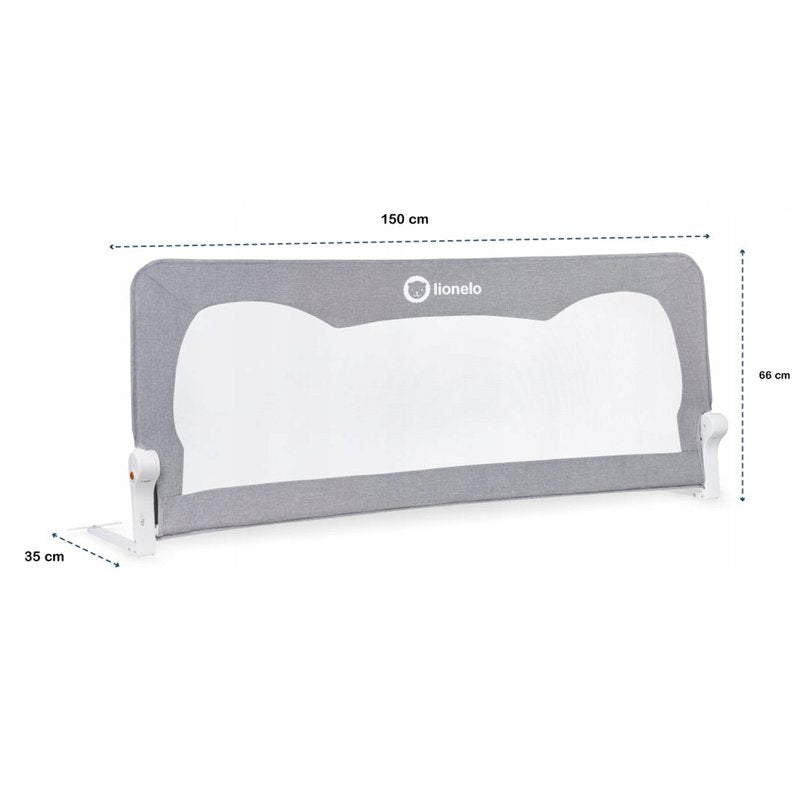 Protectie laterala pat, Lionelo, Hanna, Cu buzunar accesorii, 150x66 cm, Conform cu standardul european de securitate BS7072, Gri