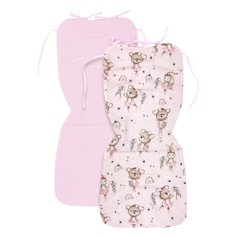 Salteluta pentru carucior, MimiNu, Reversibila, Cu doua fete, Din catifea si bumbac, Materiale certificate Oeko Tex Standard 100, 78 x 34 cm, Minky Little Ballerina Pink