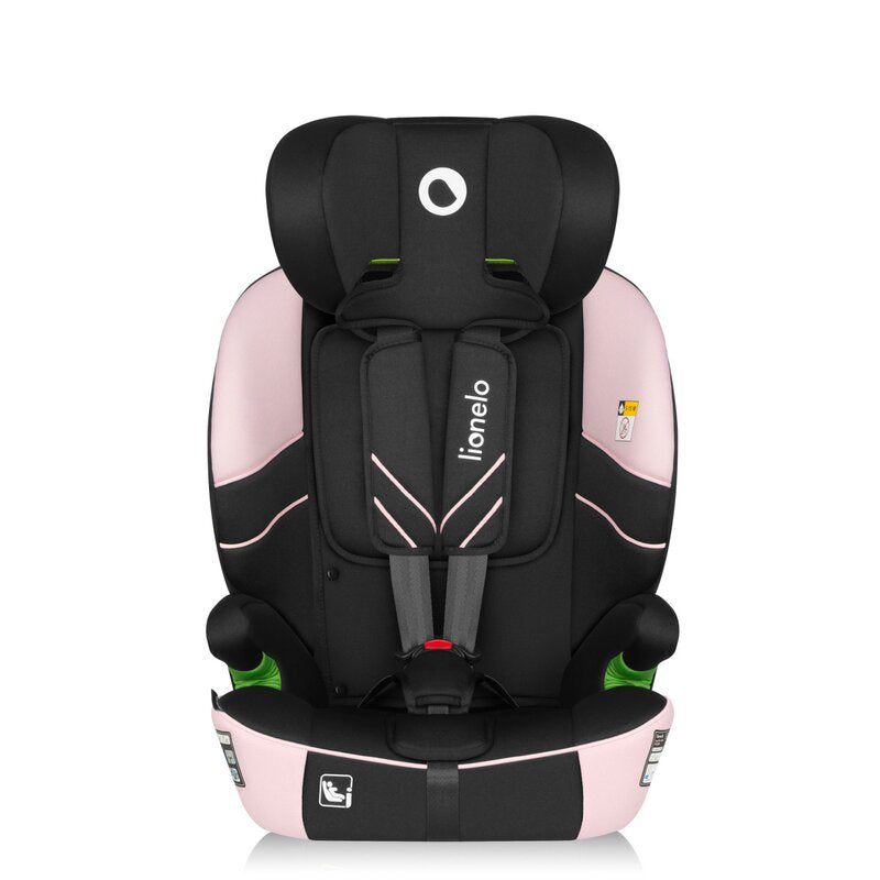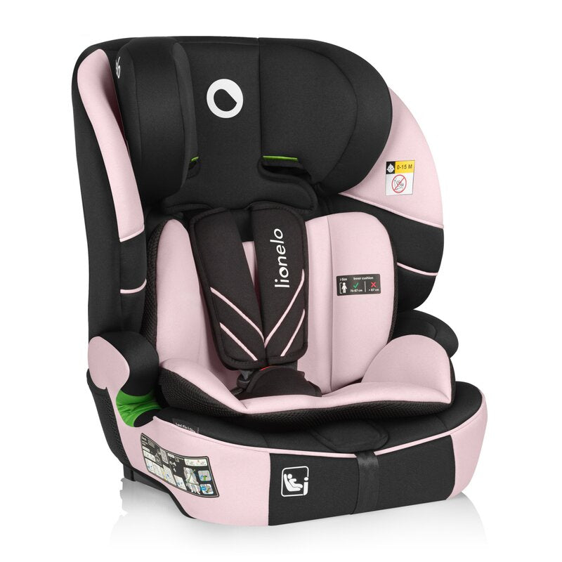 Scaun auto i-Size, Lionelo, Levi Fix, 76 - 150 cm, 1/2/3, ISOFIX + Top Tether, Tetiera reglabila in 10 pozitii, Insertie ergonomica Dri-Seat, Tapiterie lavabila, Testat la impact, Baza lata, Cotiere practice, Conform cu R129, Roz