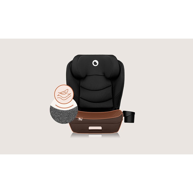 Scaun auto i-Size, Lionelo, Neal, Spatar reglabil in 4 pozitii, Tetiera in 10 pozitii, Suport sticla inclus, 15-36 Kg, 100-150 cm, Cu Isofix, Conform ECE R129, Negru