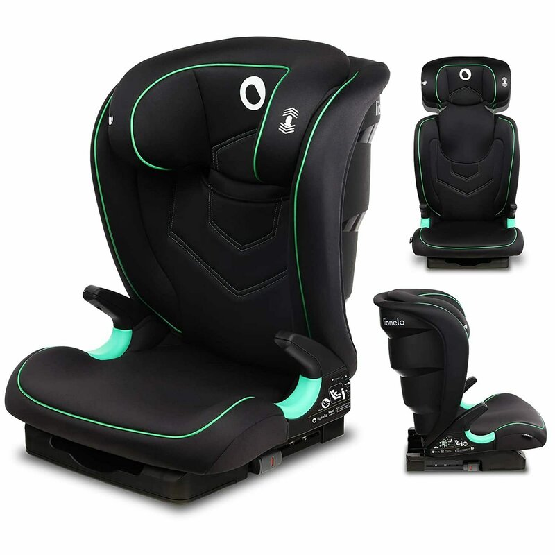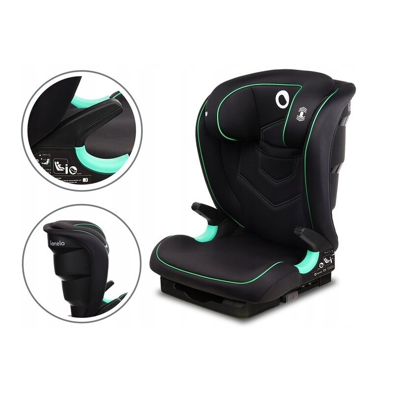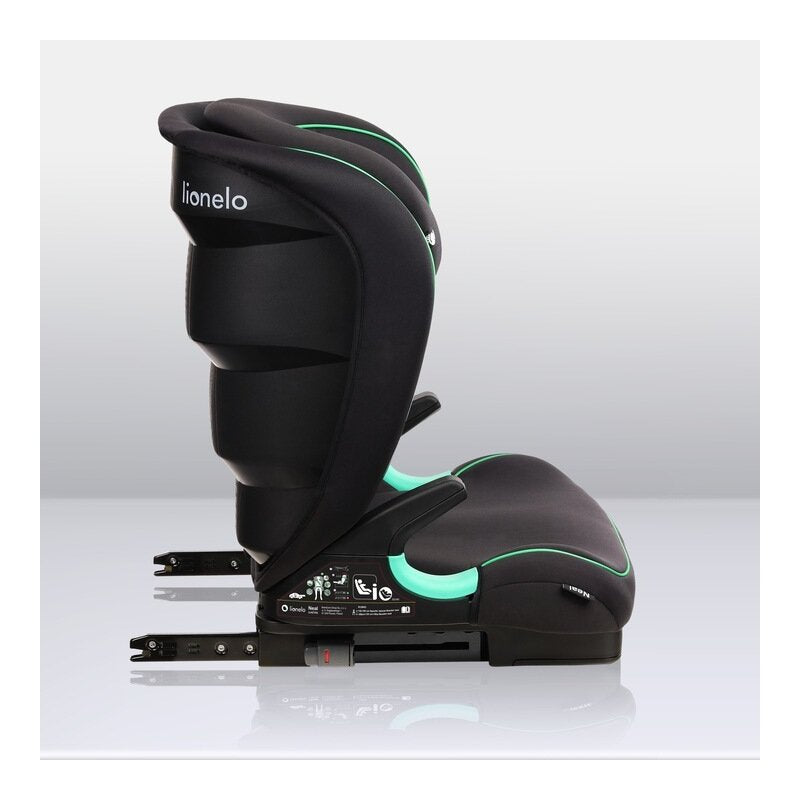 Scaun auto i-Size, Lionelo, Neal, Spatar reglabil in3 pozitii, Tetiera in 14 pozitii, Suport sticla inclus, 15-36 Kg, 100-150 cm, Cu Isofix, Conform ECE R129, Negru