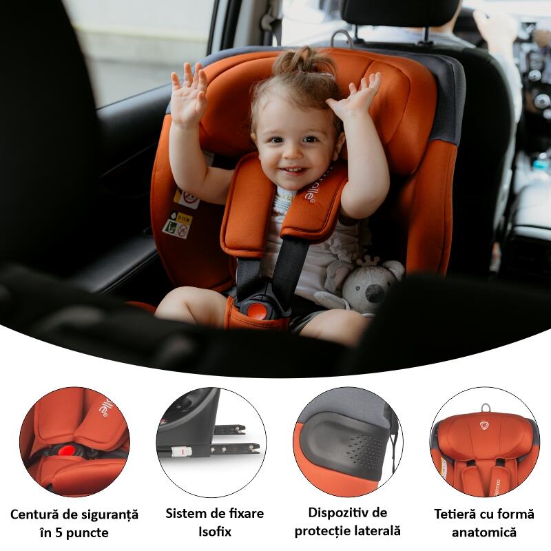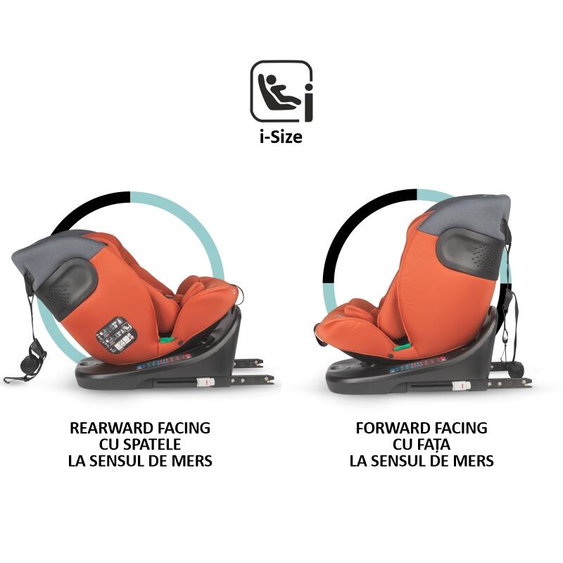 Scaunul auto rotativ iSize 40-150 cm Coccolle Atira este unul dintre cele mai inovative modele de scaun auto, acesta poate fi utilizat rear facing pana la inaltimea de 105 cm ~ 4 ani. Recomandam utilizarea acestei pozitii intrucat protectia la impact este de 5 ori mai mare decat in cazul instalarii forward facing.