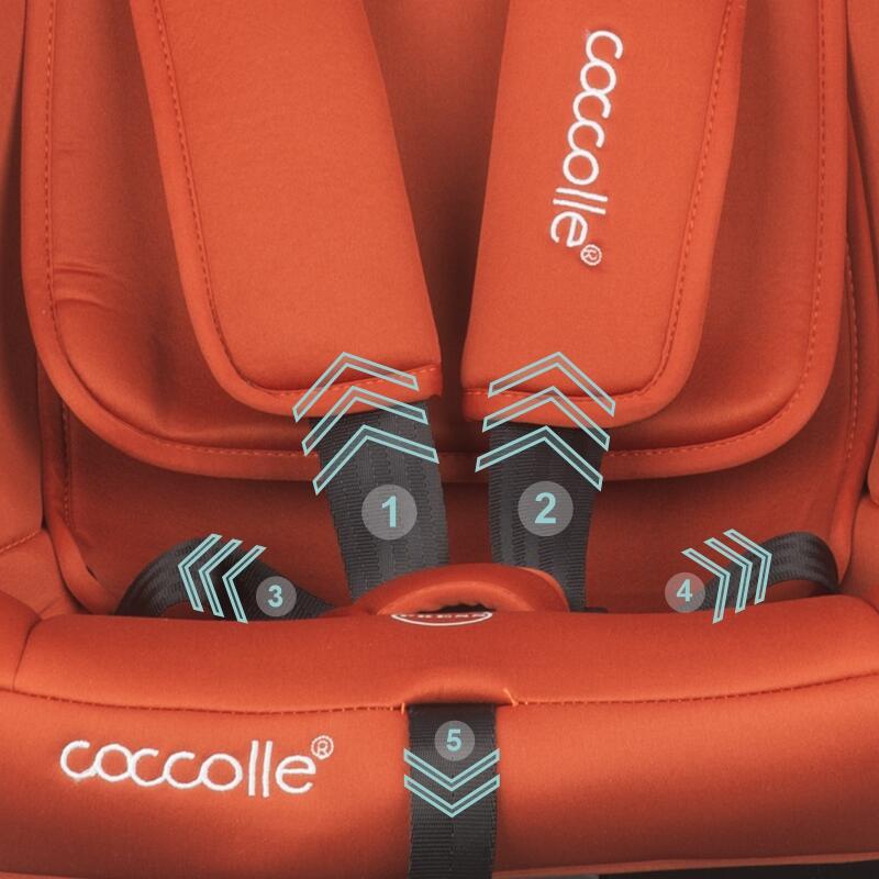 Scaunul auto Coccolle Atira are o pozitie confortabila de somn cu spatele la sensul de mers si 4 pozitii de inclinare cu fata la sensul de mers. Tetiera scaunului auto este reglabila in 12 pozitii. Folosirea indelungata nu va fi o problema, scaunului i se indeparteaza centurile si poate fi folosit pana la aproximativ 12 ani cu ajutorul centurii autoturismului.