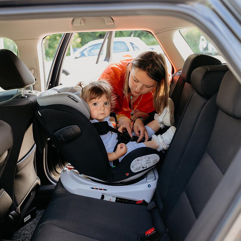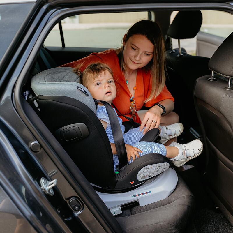 Scaunul se instaleaza in autoturism cu ajutorul sistemului isofix si a centurii top tether; compatibilitatea este ridicata cu orice fel de masina, dar beneficiile pe care le aduce scaunul auto (pozitia de somn in special) vor fi diferite in functie de modelul de autoturism detinut. Insertul garanteaza o pozitie ergonomica noului nascut, iar protectia la impact lateral ajuta la minimizarea eventualelor socuri ce survin la impact lateral.