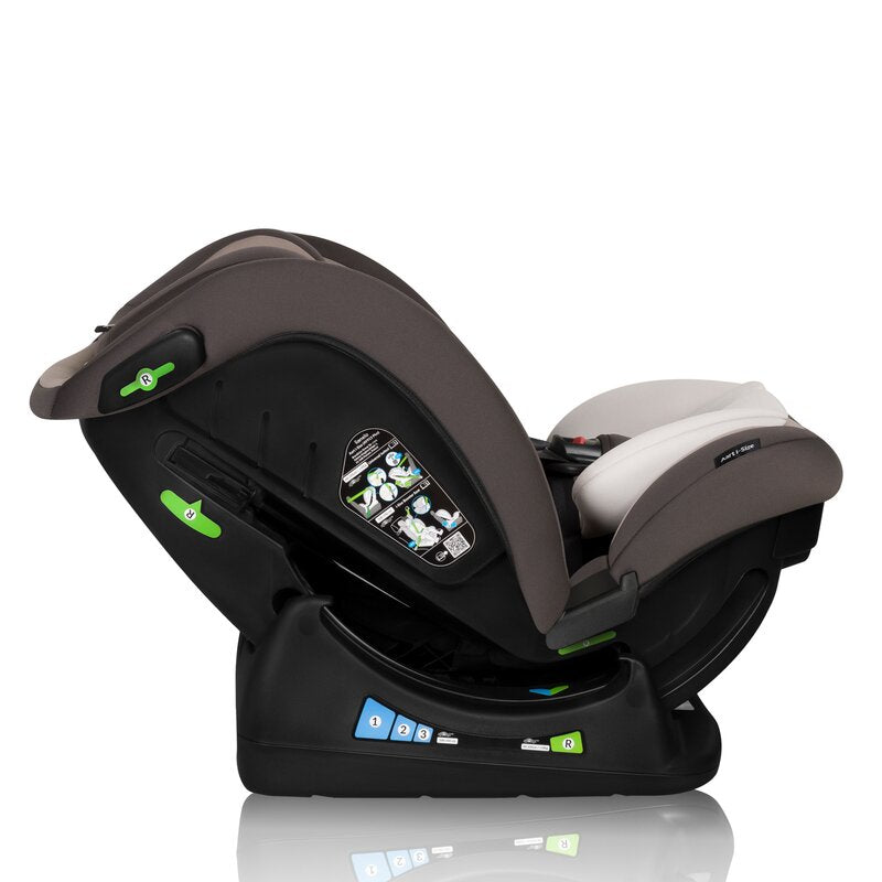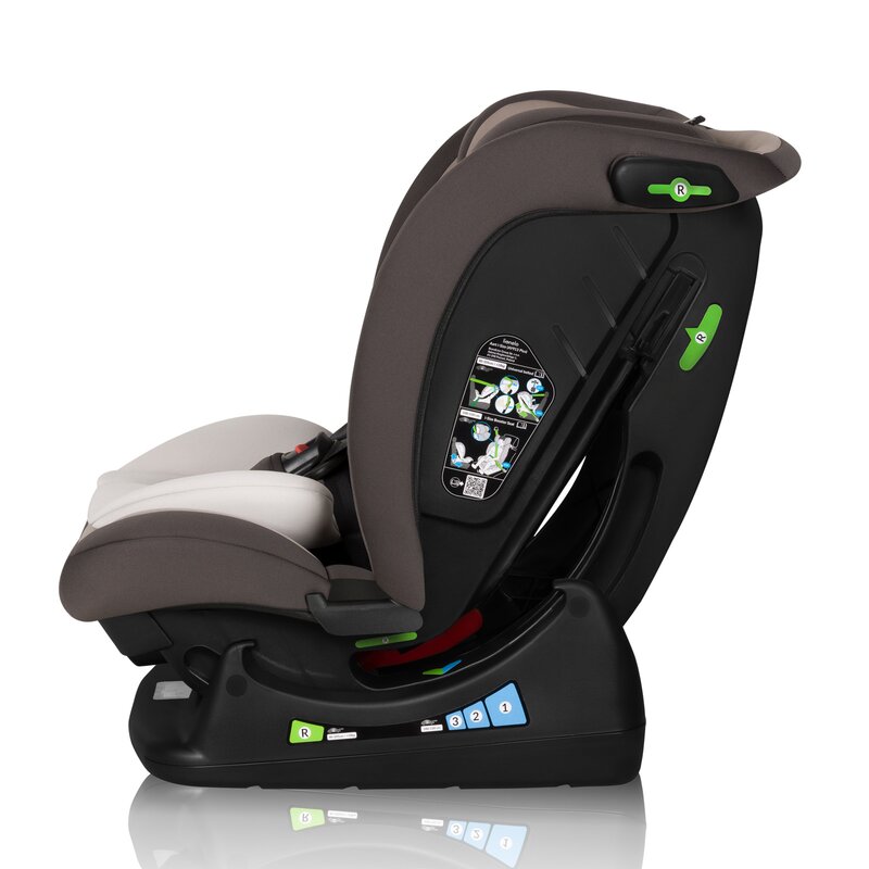- Scaunul auto ofera un unghi optim si ergonomic al inclinarii sezutului in pozitia cu spatele catre directia de mers. Cele 3 trepte de reglare a spatarului in montajul cu fata catre directia de mers permit schimbarea pozitiei scaunului auto, protejand capul bebelusului impotriva caderii in timpul somnului.
