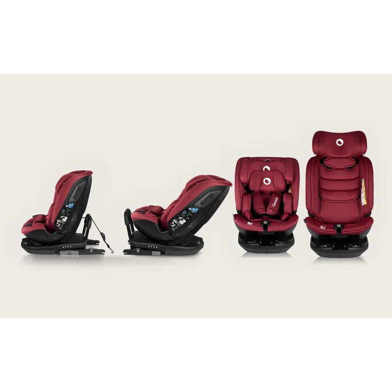 Scaun auto, Lionelo, Bastiaan RWF i-Size, Pozitie de somn, Protectie laterala, Rotire 360 grade, 0-36 Kg, Cu Isofix si Centura Top Tether, Conform cu standardul european de securitate ECE R129, Rosu