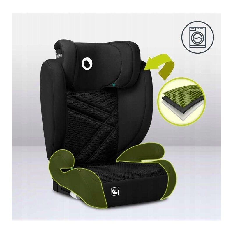 Scaun auto, Lionelo, Hugo i-Size, Universal, Orientare in directia sensului de mers, Reglabil, Conform standardului de securitate R129, 100-150 cm, 4-12 ani, Negru