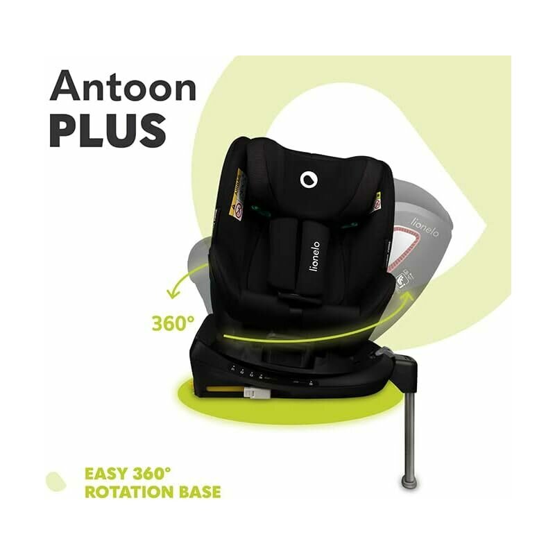 Scaun auto, Lionelo, I-size Antoon Plus, Pozitie de somn, Protectie laterala, Rotire 360 grade, 0-18 kg, Cu Isofix si picior de sustinere, Negru, Testat ADAC, Conform cu standardul european de securitate ECE R129, Negru