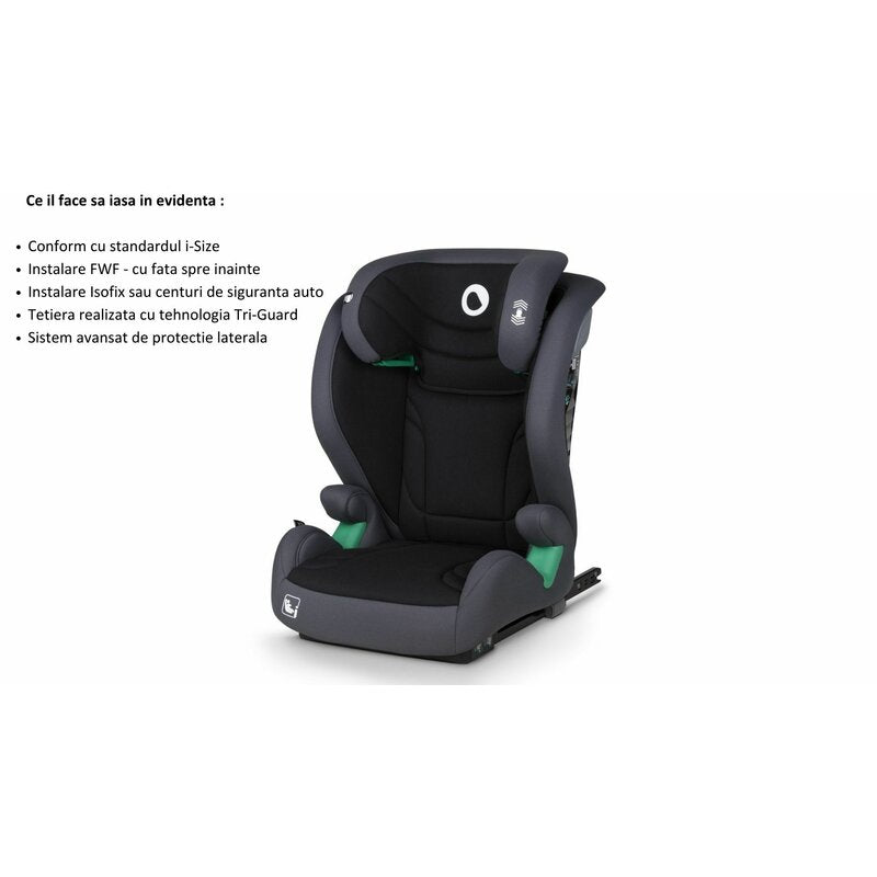 Scaun auto, Lionelo, i-Size Igo, 100- 150 cm, Cu isofix, Protectie laterala, Ajustare spatar in 2 pozitii, Tetiera Tri-Guard reglabila in 11 pozitii, Conform cu standardul european de securitate R129, Gri