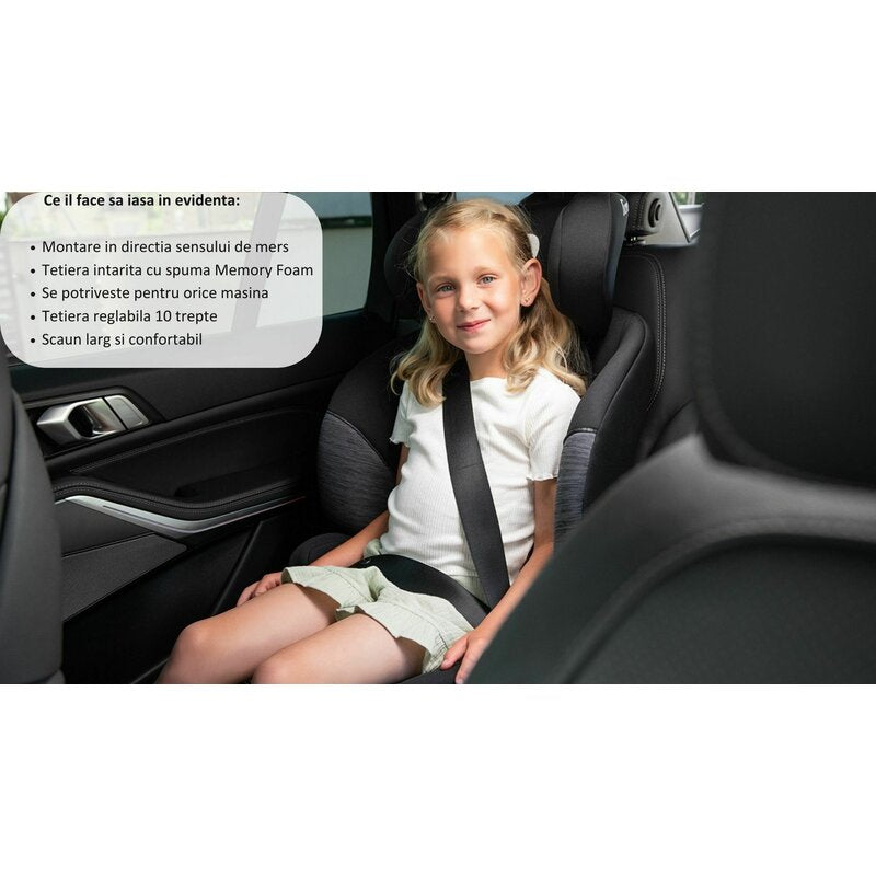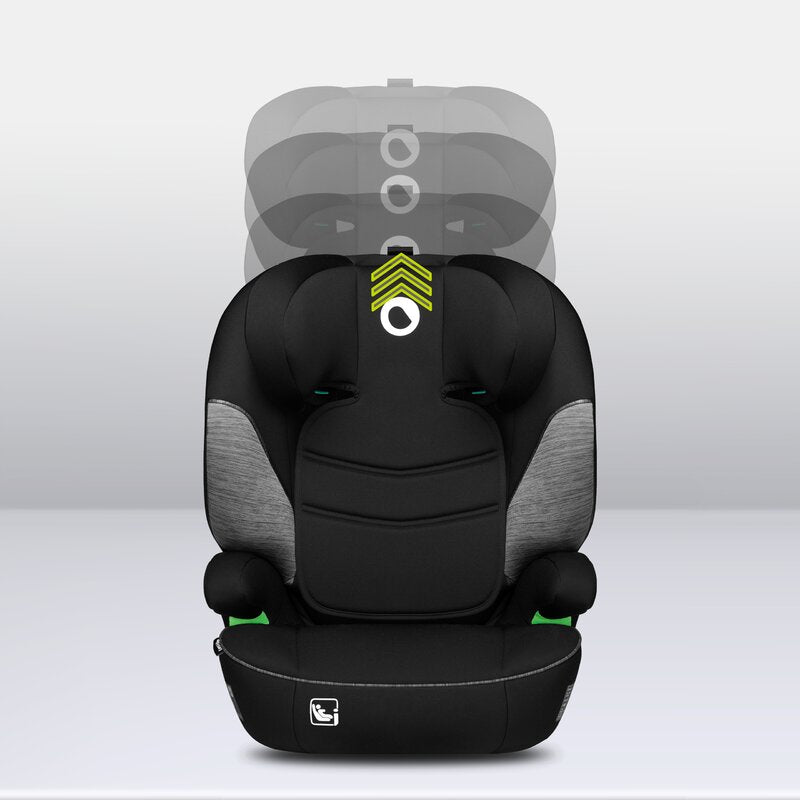 Scaun auto, Lionelo, Lars i-Size, Cu tetiera reglabila in 10 pozitii, Cu pozitionare spre sensul de mers, 15-36 Kg, 100-150 cm, Conform cu standardul european de securitate ECE R129/03, Negru/Gri