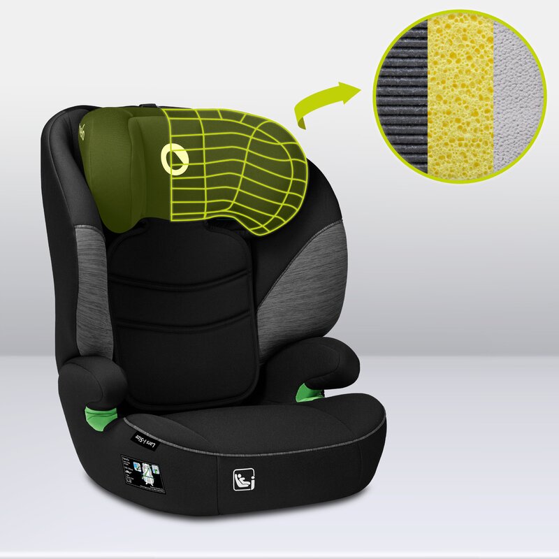 Lars i-Size respecta aprobarea stricta R129, deci indeplineste cele mai inalte standarde de siguranta. Este echipat cu o tetiera reglabila cu Memory Foam, care, datorita elasticitatii sale, absoarbe perfect suprasarcinile. Protectia laterala avansata ofera protectie suplimentara in cazul unei coliziuni.