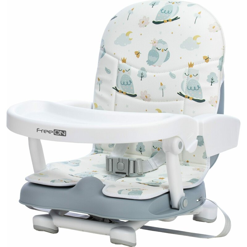 Scaun de masa, FreeON, Levi, Booster, Pliabil, Cu tavita detasabila, Reglabil in 4 pozitii pe inaltime, Cu centuri de siguranta in 3 puncte, 6 luni+, Conform cu standardul european EN16120, Owl