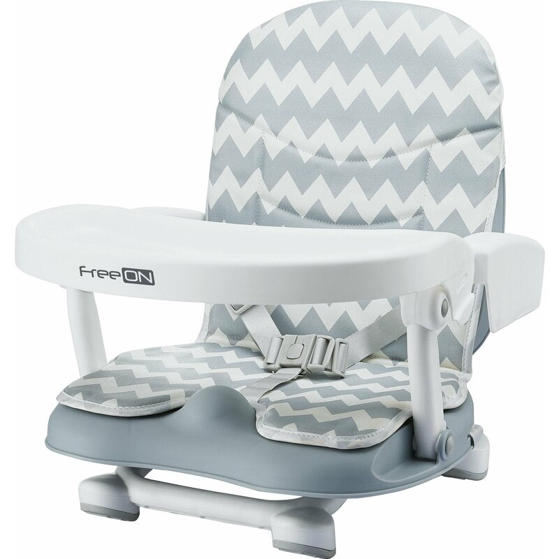 Scaun de masa, FreeON, Levi, Booster, Pliabil, Cu tavita detasabila, Reglabil in 4 pozitii pe inaltime, Cu centuri de siguranta in 3 puncte, 6 luni+, Conform cu standardul european EN16120, Zig-Zag