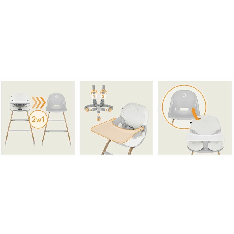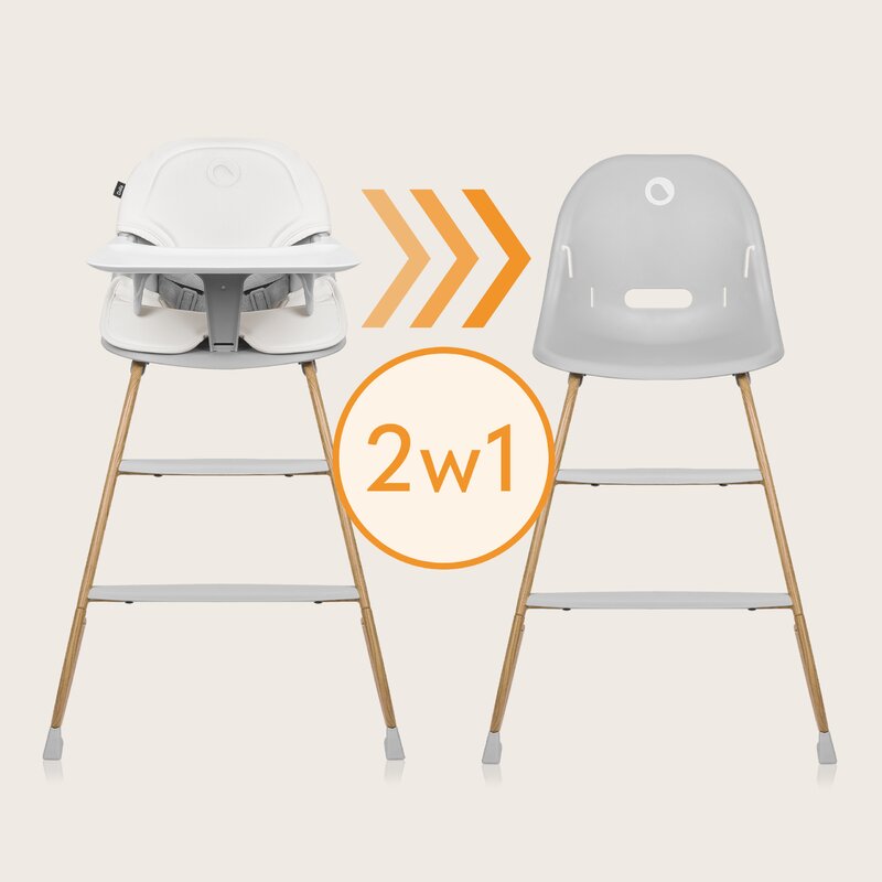 Scaun de masa, Lionelo, Dalia, 2 in 1, Transformabil, Cu 2 suporturi pentru picioare, Cu tavita detasabila, Sustine 60 kg, 6 luni+, Conform cu EN14988, Gri