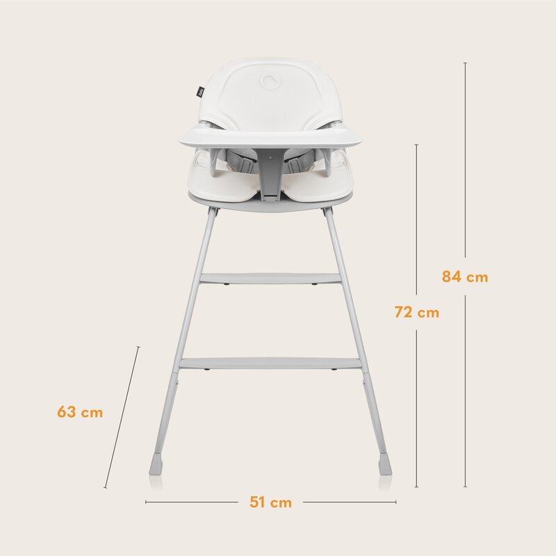 Cadrul scaunului este stabil, oferind siguranta maxima, mai ales pentru cei mai mici copii. In plus, inaltimea sa a fost adaptata la mesele standard, ceea ce imbunatateste confortul in timpul meselor impreuna.
