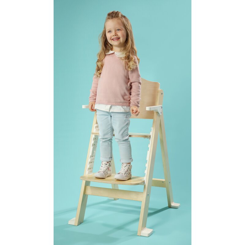 Scaun de masa, Lionelo, Floris, 3 in 1, Din Lemn, Transformabil, Reglabil in inaltime in 4 pozitii, Suport de picioare reglabil in 4 pozitii, Natur