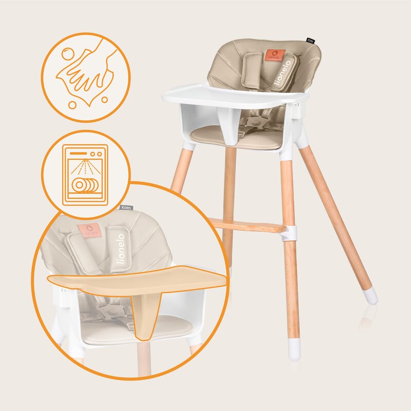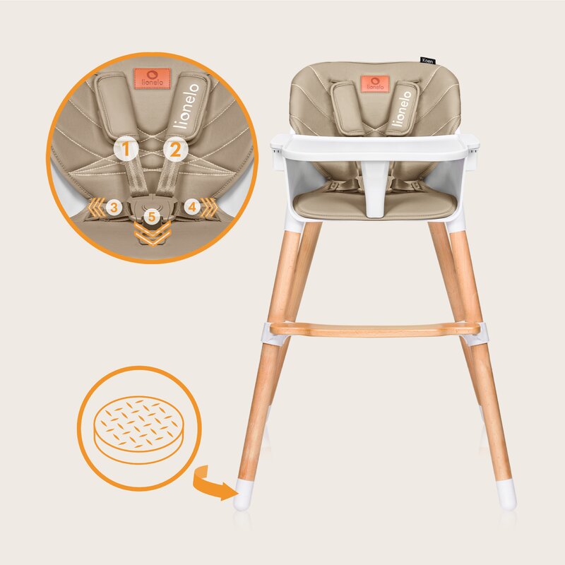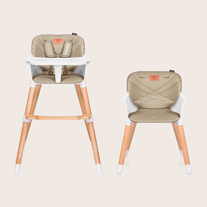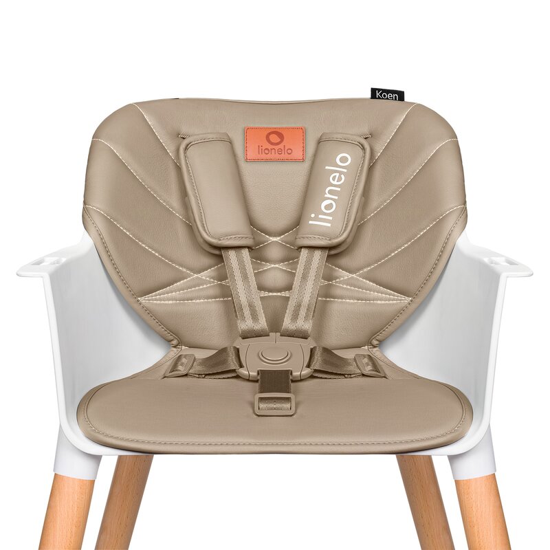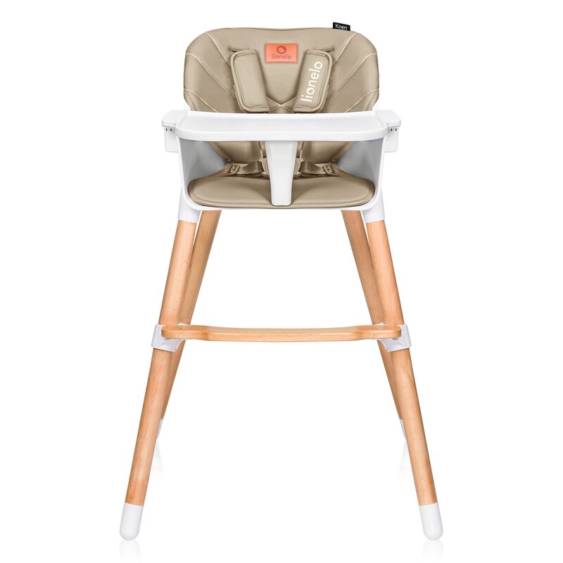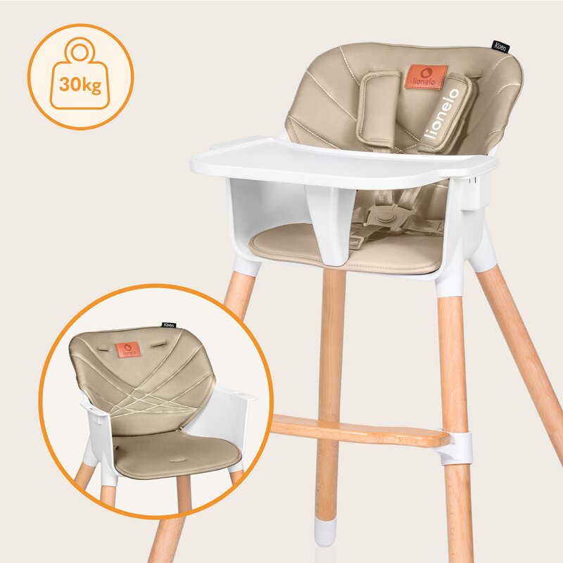 Scaun de masa, Lionelo, Koen, Din fag, 2 in 1, Transformabil, Sustine 30 kg, 6 luni+, Conform cu standardul european de securitate EN14988, Bej