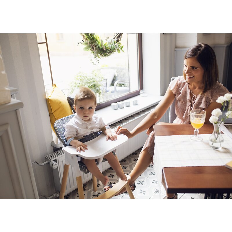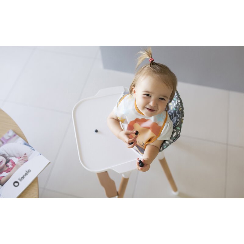 Este o combinatie intre stil minimalist si functionalitate, asigurand in acelasi timp siguranta copilului. Scaunul Lionelo Koen are tot ce ai nevoie cand incepi sa introduci alimentatia solida pentru bebelus - o tava mare, un sezut confortabil si un suport reglabil pentru picioare. Asadar, incepand cu momentul in care micutul incepe sa stea singur (aproximativ la 6 luni), alege un model testat! Datorita picioarelor interschimbabile, este o solutie pe termen lung. Se va dovedi util nu doar ca un inalt scaun de masa, ci si ca o practica scaun pentru masa micutului pana la varsta de 5 ani.