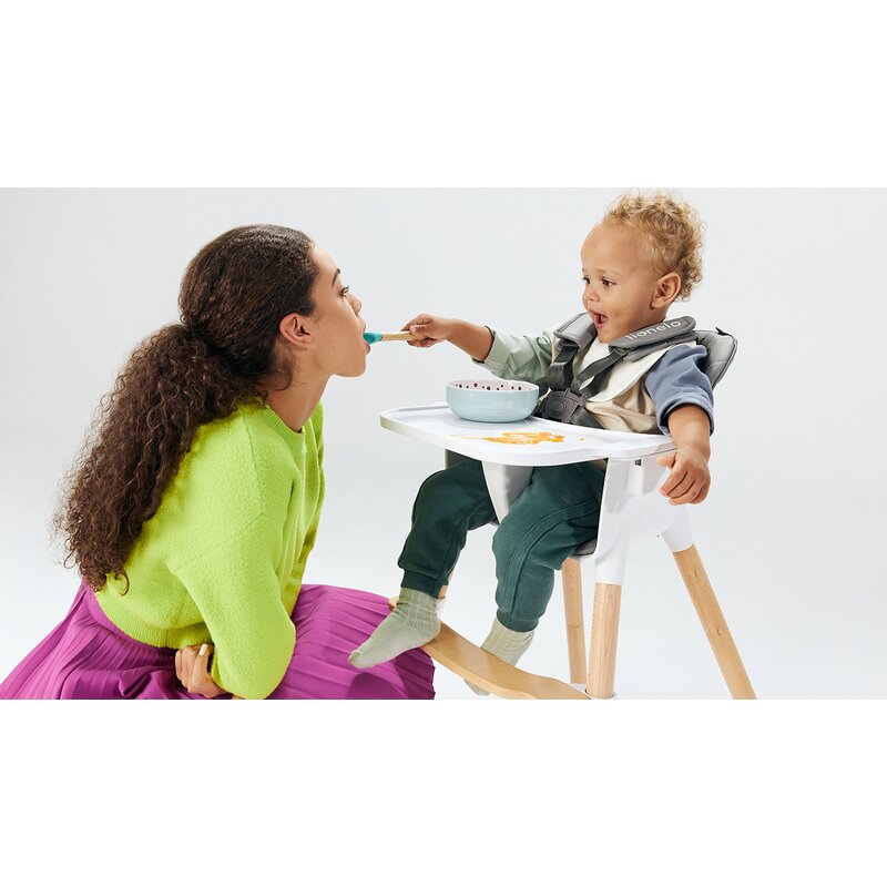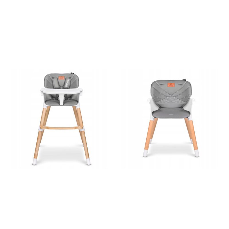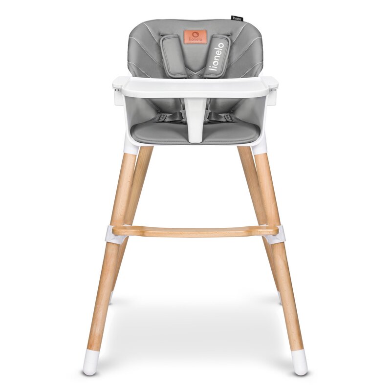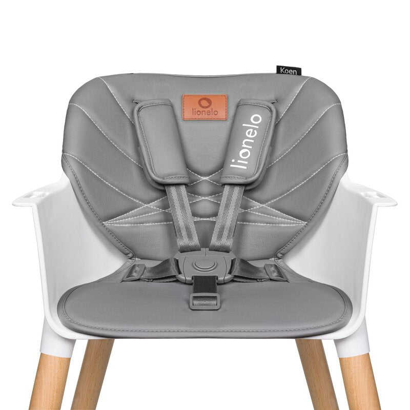 Scaun de masa, Lionelo, Koen, Din fag, 2 in 1, Transformabil, Sustine 30 kg, 6 luni+, Conform cu standardul european de securitate EN14988, Gri